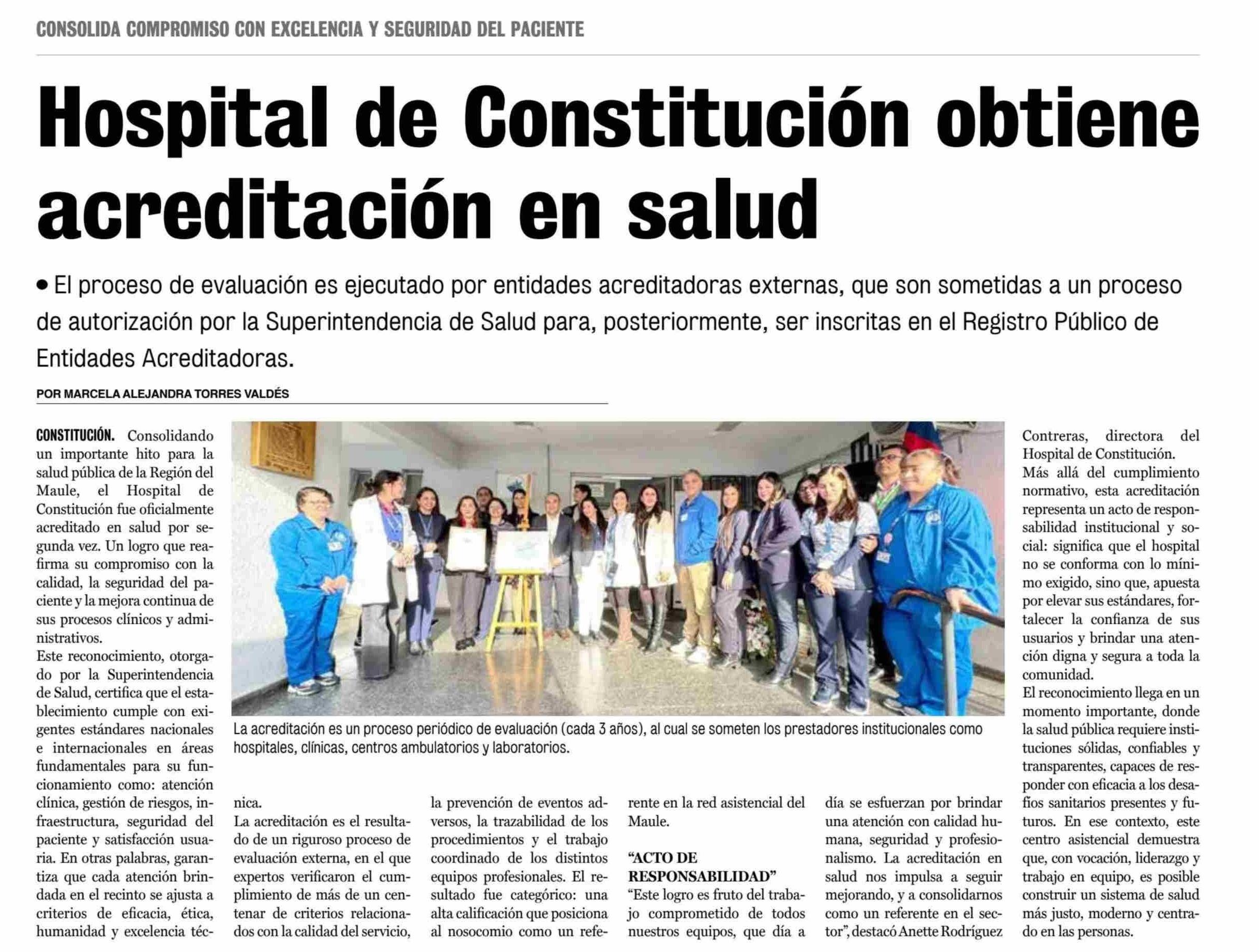 Hospital de Constitución obtiene acreditación en salud 03-06-2025 La Prensa de Curicó |