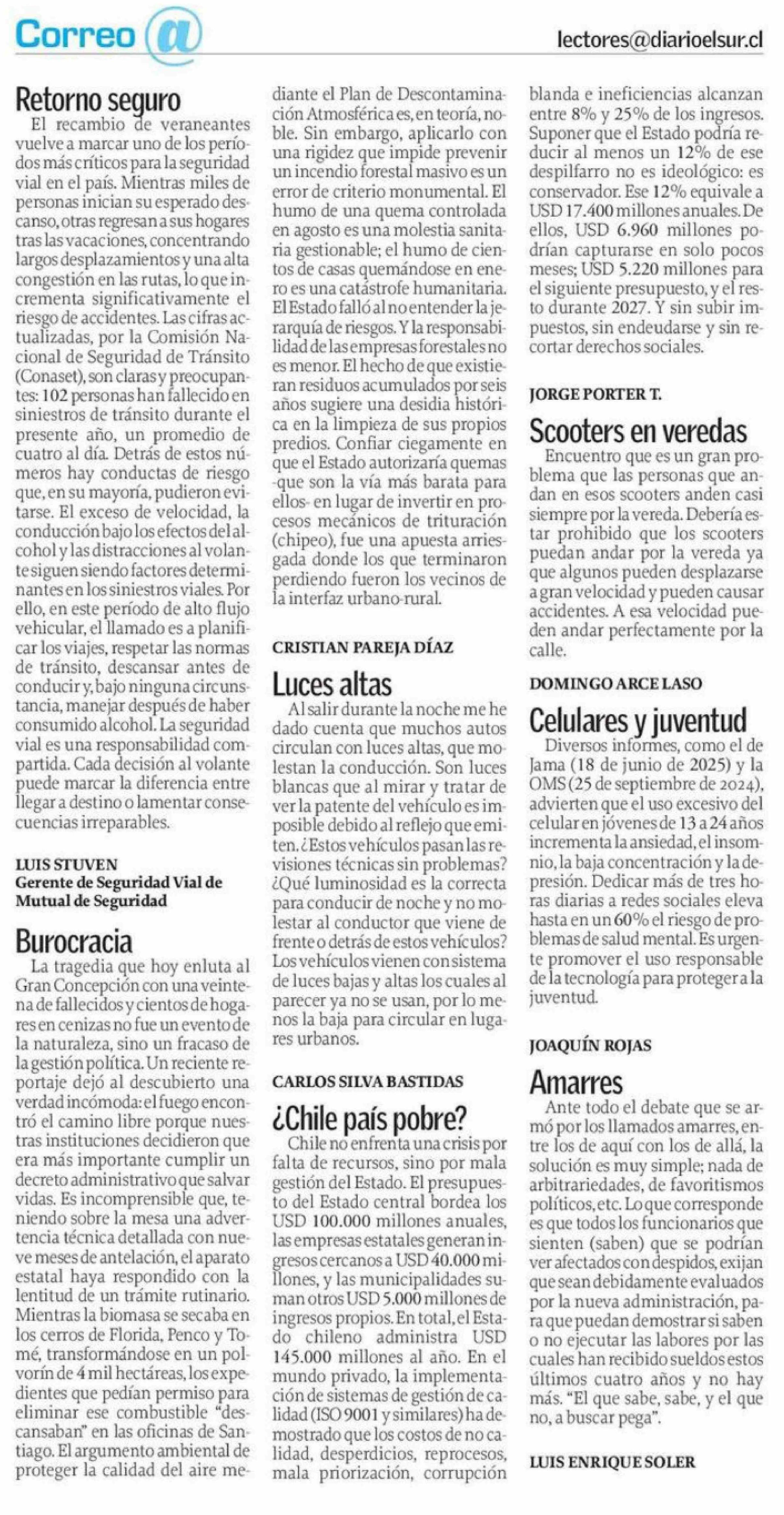 Cartas: Scooters en veredas Encuentro que es un gran pro- 01-02-2026 El Sur |