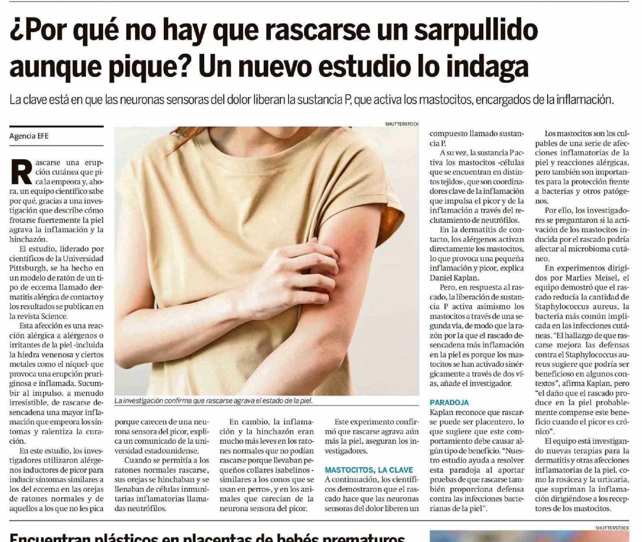 | Título: | ¿Por qué no hay que rascarse un sarpullido aunque pique? Un nuevo estudio lo indaga |