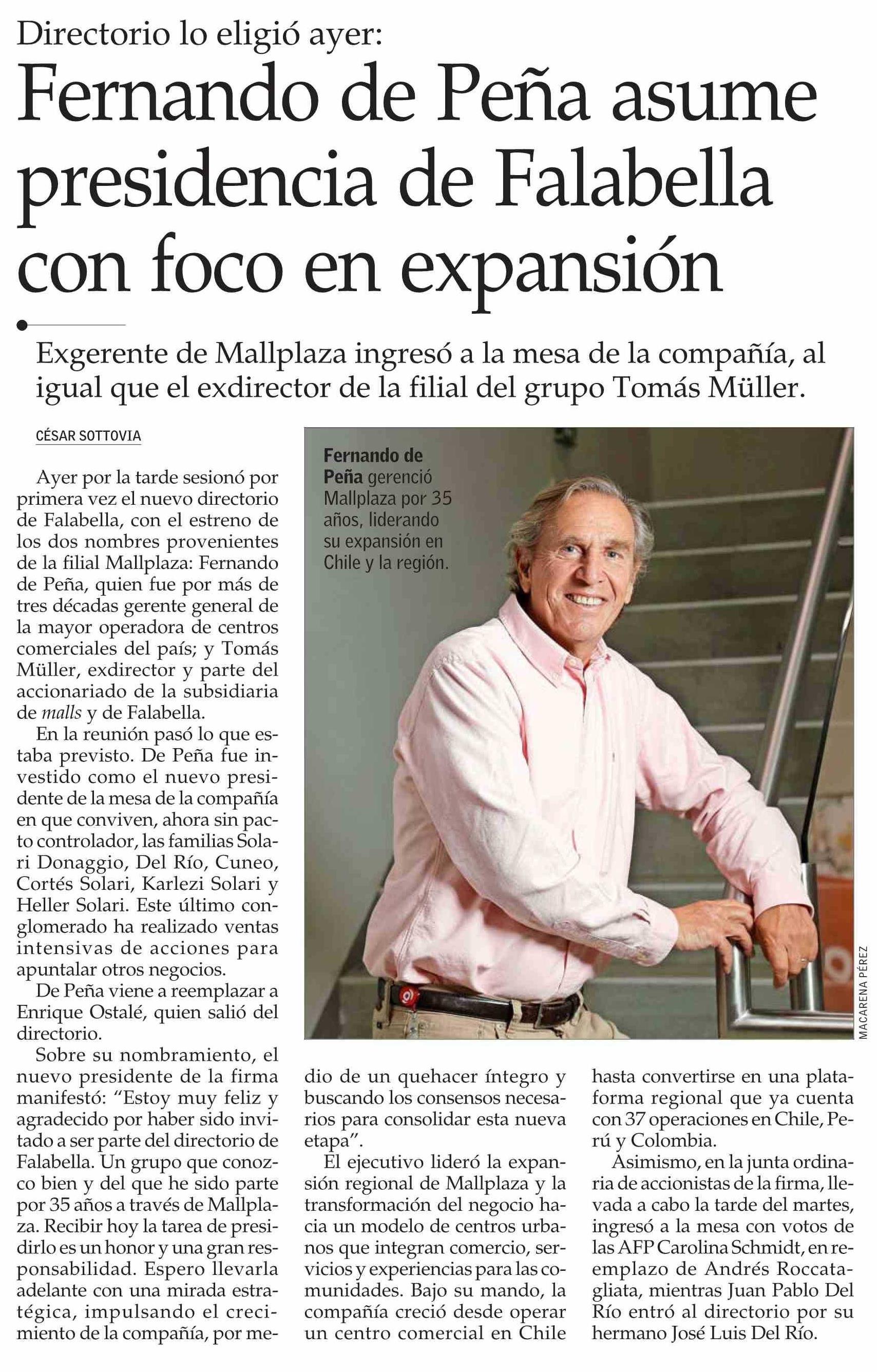| Título: | Fernando de Peña asume presidencia de Falabella con foco en expansión |
