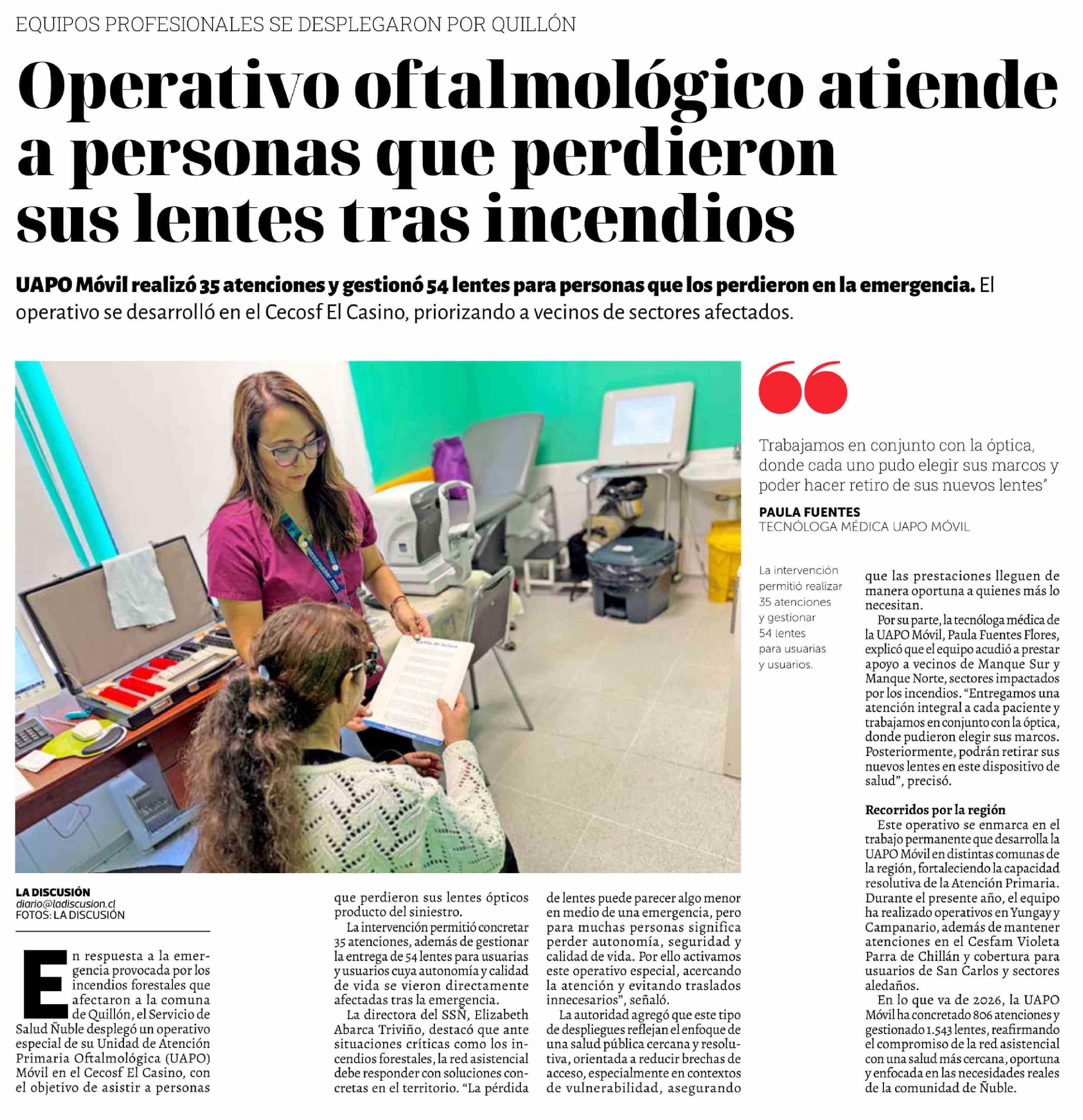 Operativo oftalmológico atiende a personas que perdieron sus lentes tras incendios 26-02-2026 La Discusión |