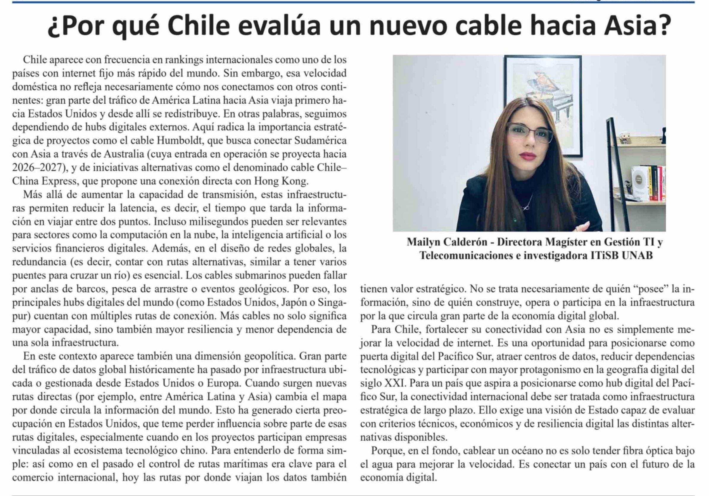 Título: Columnas de Opinión: ¿Por qué Chile evalúa un nuevo cable hacia Asia?