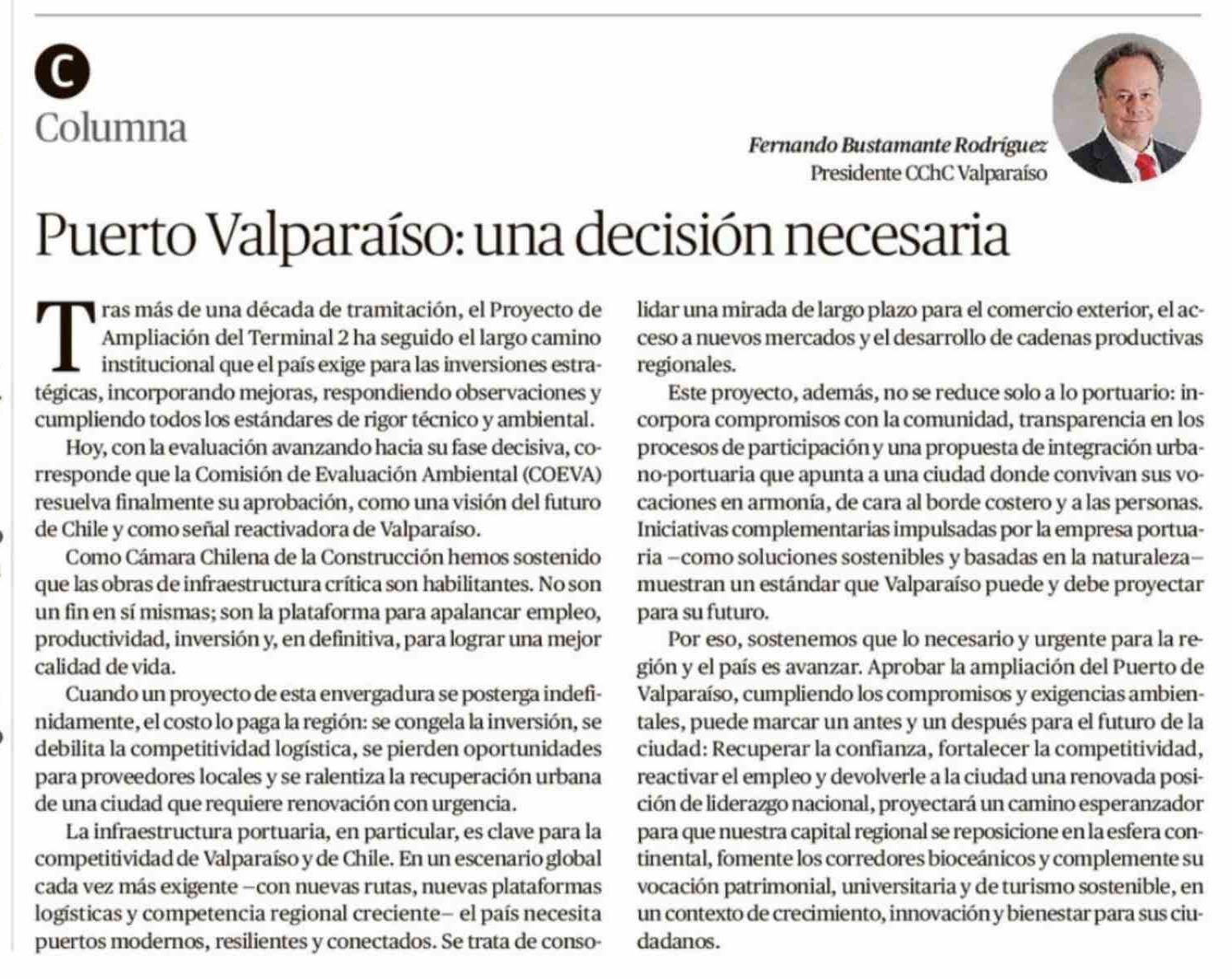 Título: Columnas de Opinión: Puerto Valparaíso: una decisión necesaria