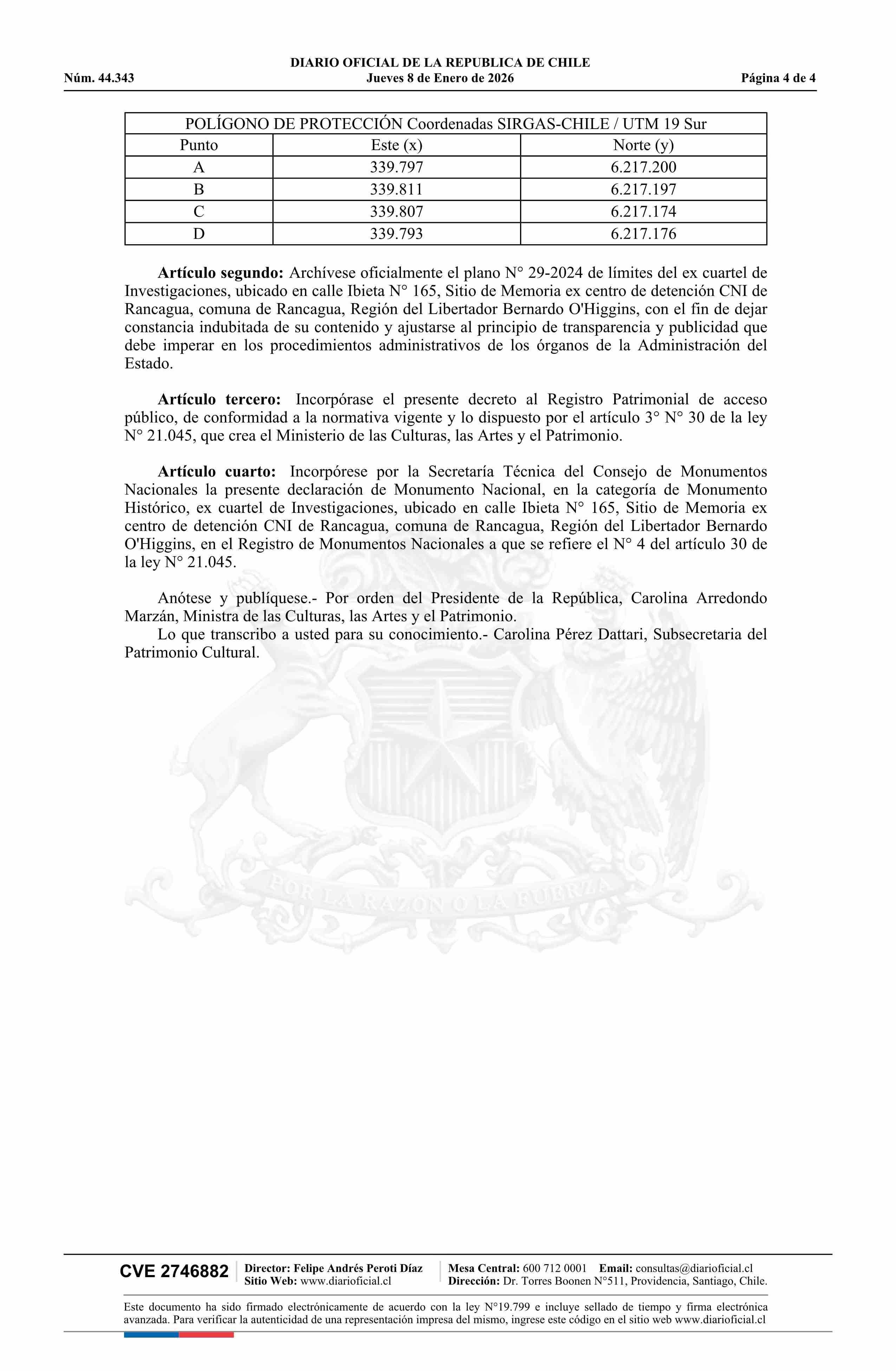 Decreto número 38, de 2025.- Declara Monumento Nacional, en la categoría de Monumento Histórico, el ex Cuartel de Investigaciones, ubicado en calle Ibieta N° 165, Sitio de Memoria Ex Centro de Detención CNI de Rancagua, comuna de Rancagua, Región del Libertador General Bernardo O'Higgins