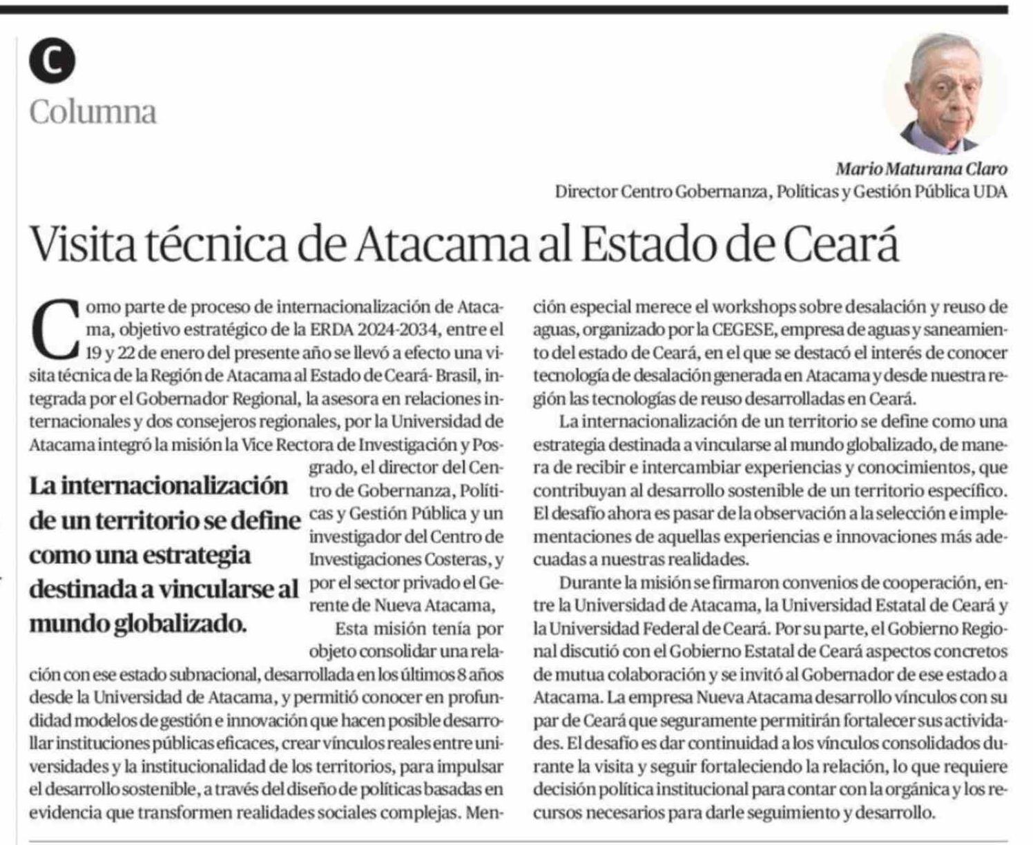 Columnas de Opinión: Visita técnica de Atacama al Estado de Ceará 14-03-2026 El Diario de Atacama |