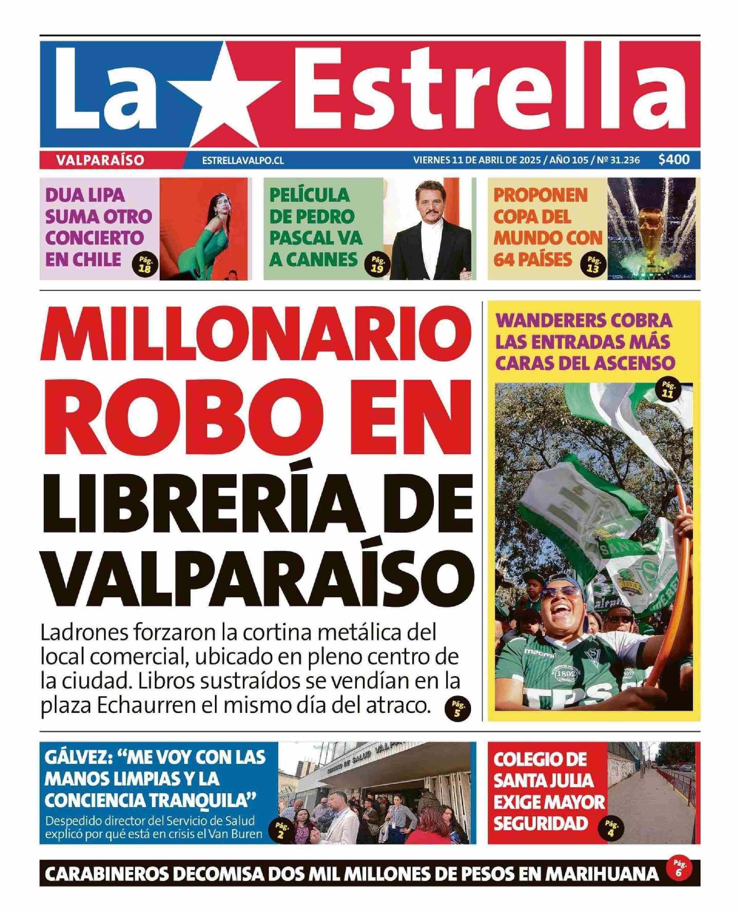 PORTADA LA ESTRELLA DE VALPARAÍSO - CHILE 11-04-2025 La Estrella de Valparaíso |