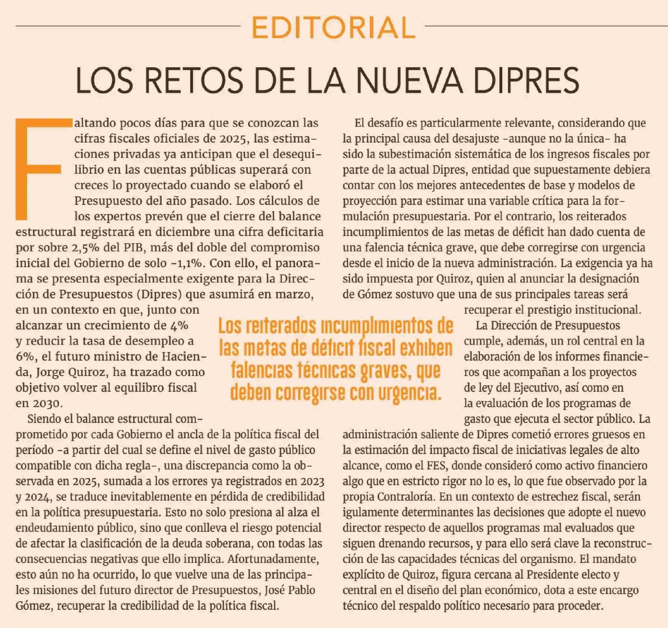 Editorial: LOS RETOS DE LA NUEVA DIPRES