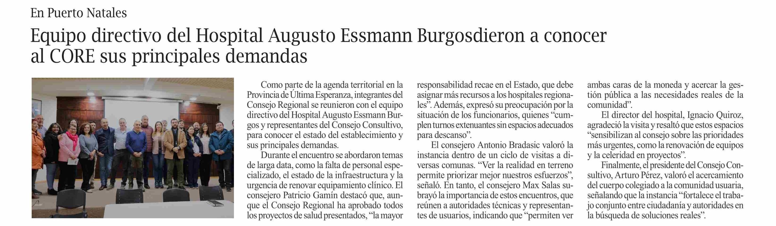 Equipo directivo del Hospital Augusto Essmann Burgosdieron a conocer al CORE sus principales demandas 23-05-2025 El Pingüino |