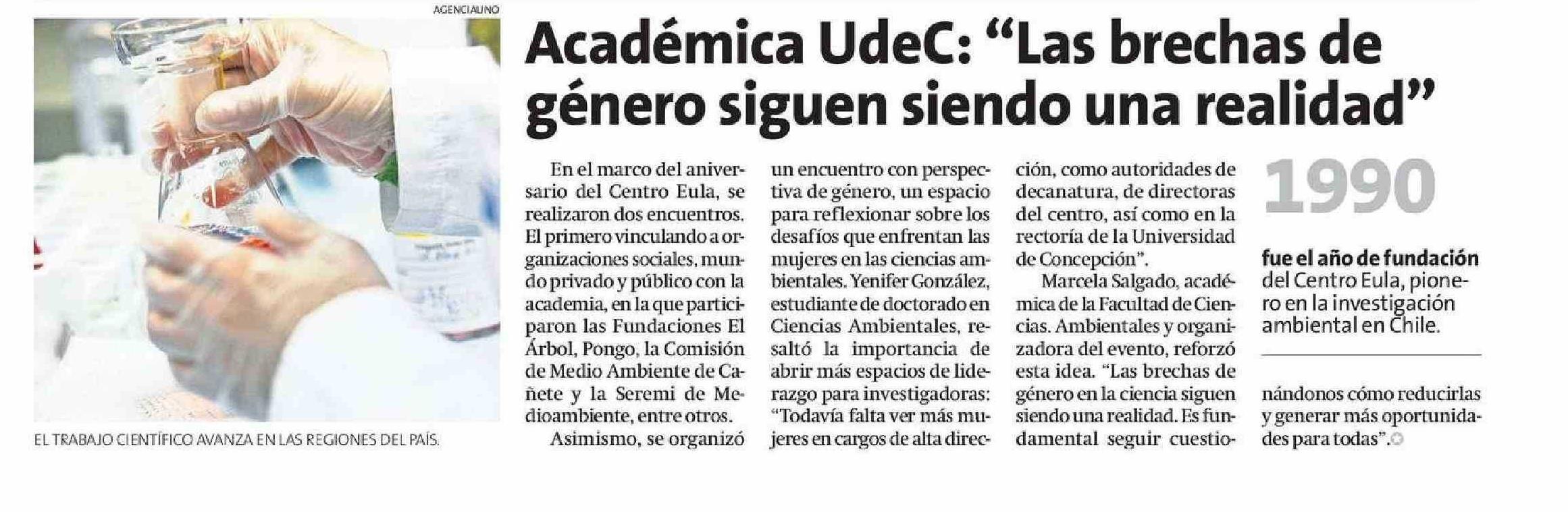 Académica Udec: “Las brechas de género siguen siendo una realidad” 02-04-2025 La Estrella de Concepción |