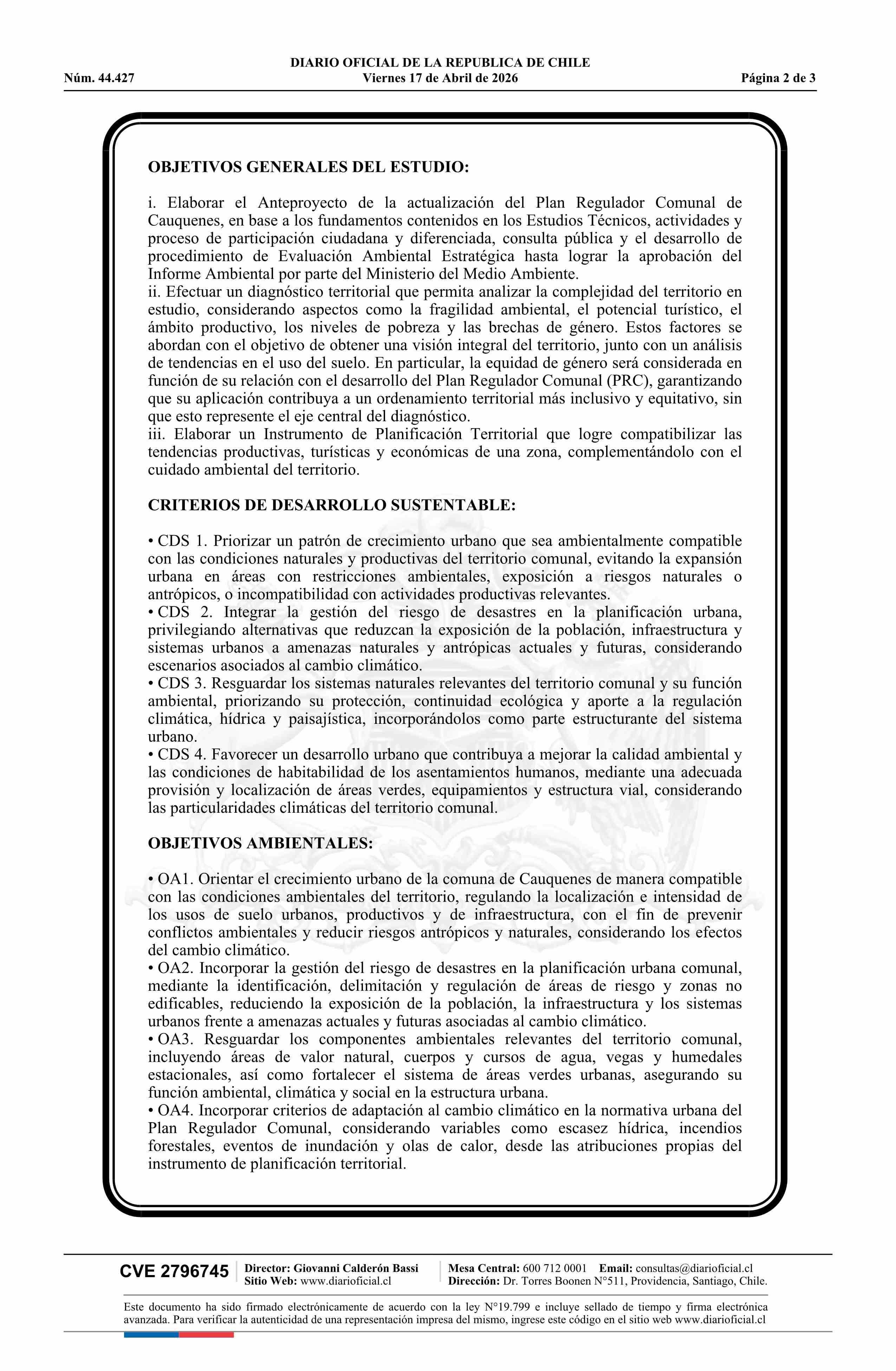 Título: AVISO LICITACIONES: Evaluación Ambiental Estratégica de la Actualización Plan Regulador Comunal de Cauquenes