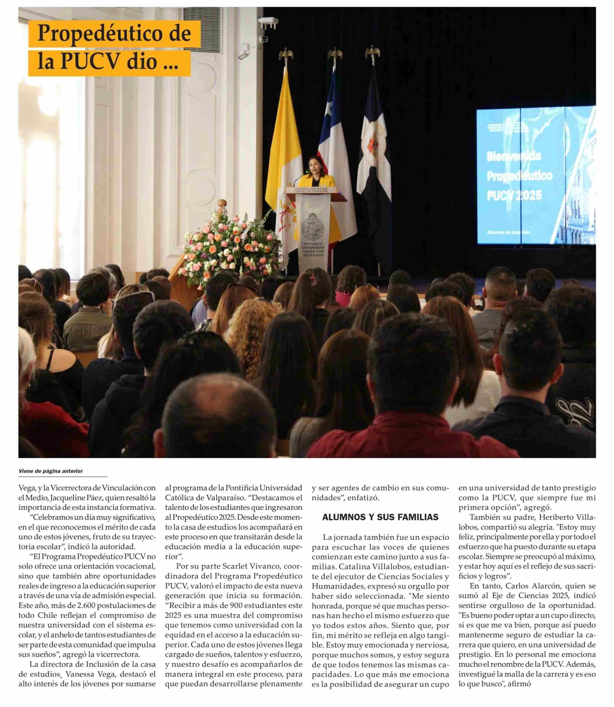 Propedéutico de la PUCV dio la bienvenida a más de 900 estudiantes 06-05-2025 El Observador Vespertino |