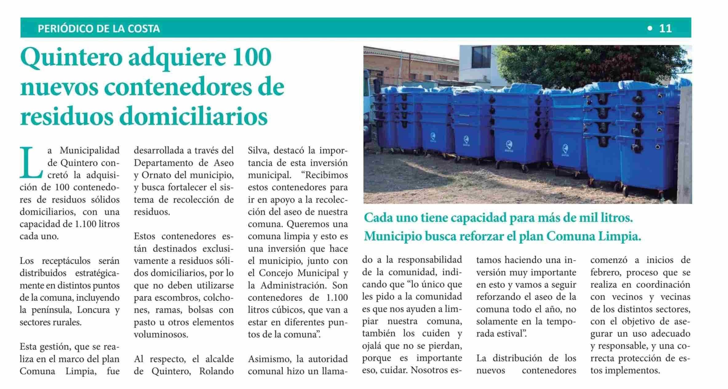 | Título: | Quintero adquiere nuevos contenedores de residuos domiciliarios |