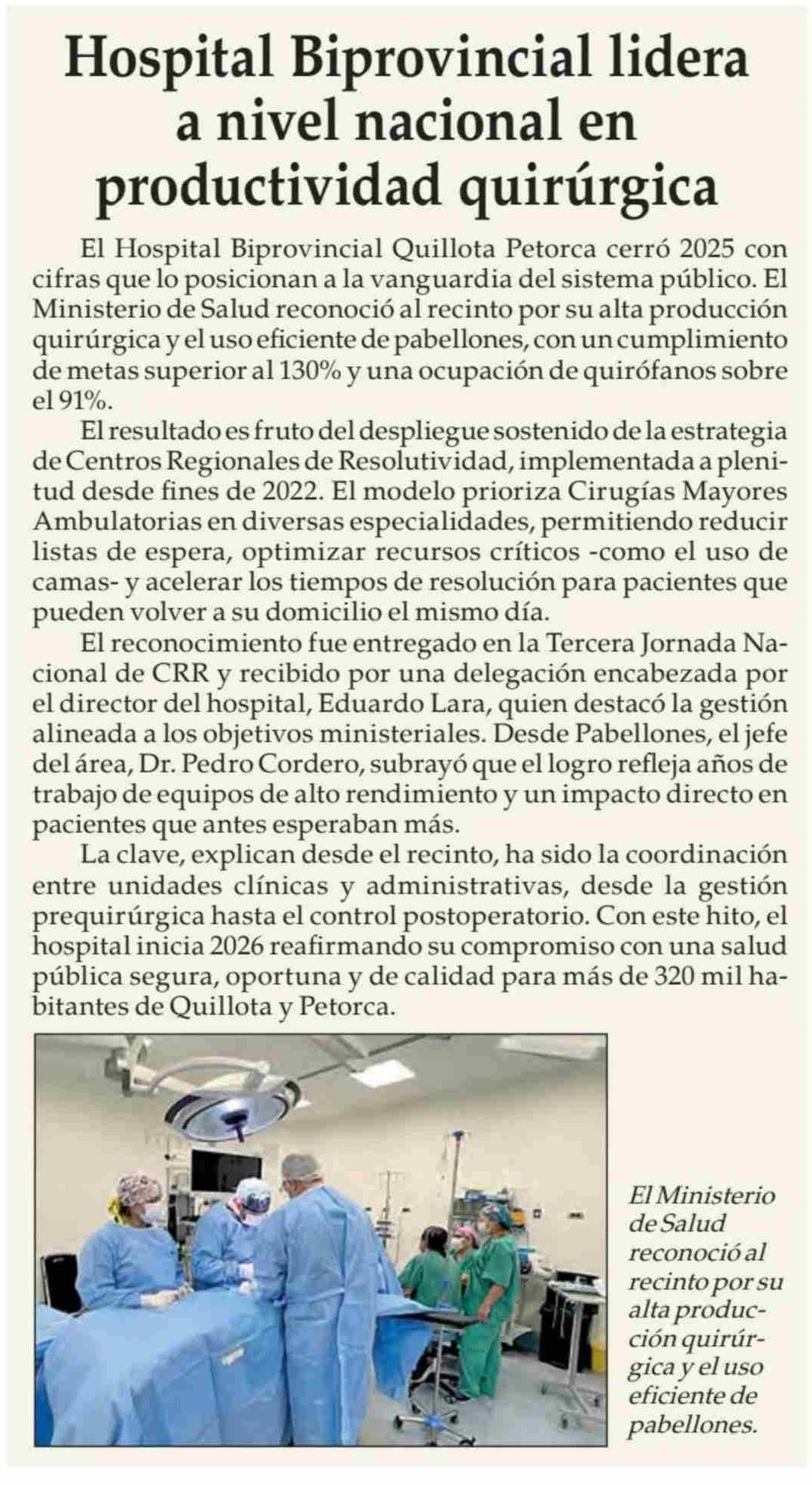 Título: Hospital Biprovincial lidera a nivel nacional en productividad quirúrgica