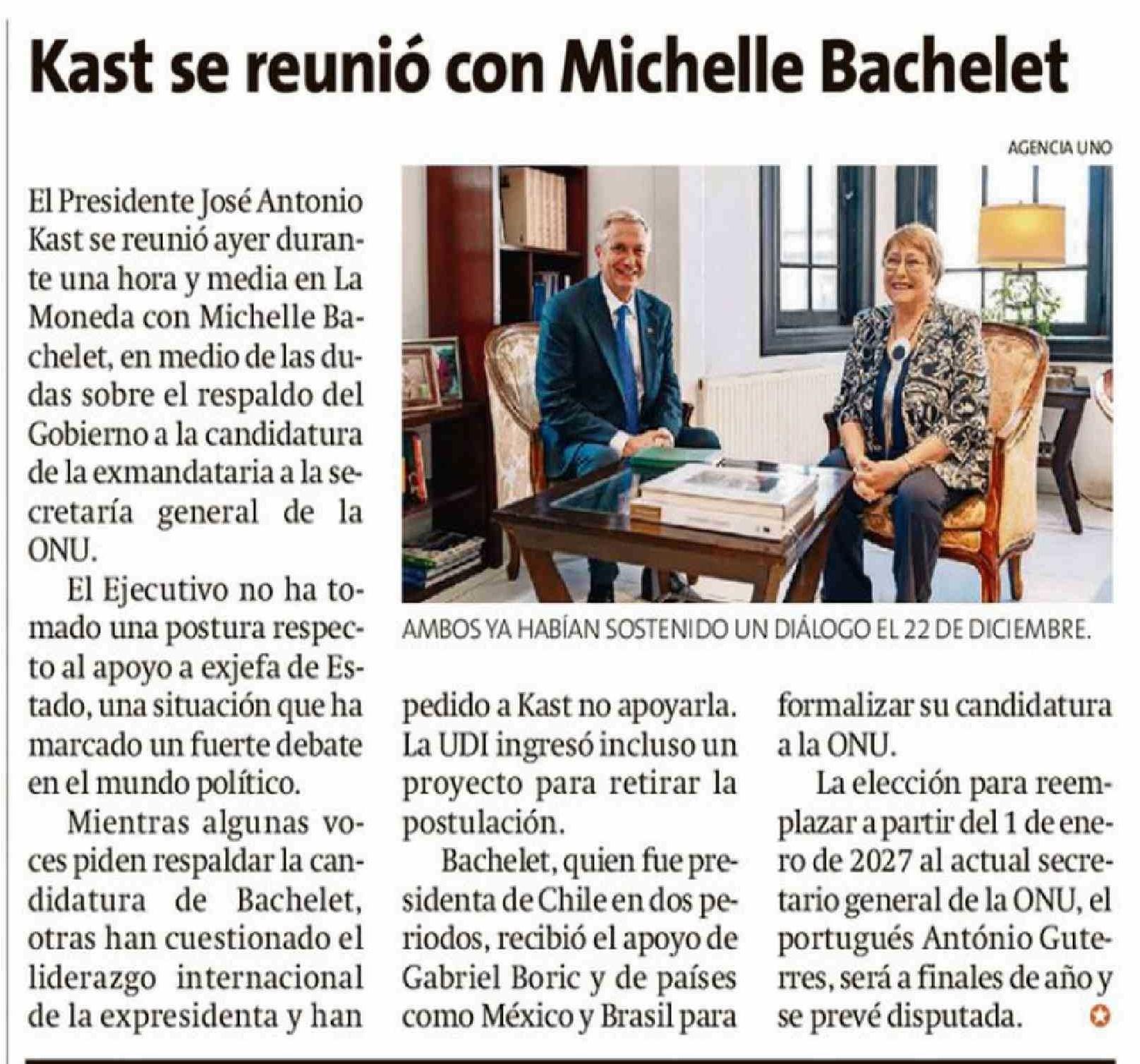 | Título: | Kast se reunió con Michelle Bachelet |