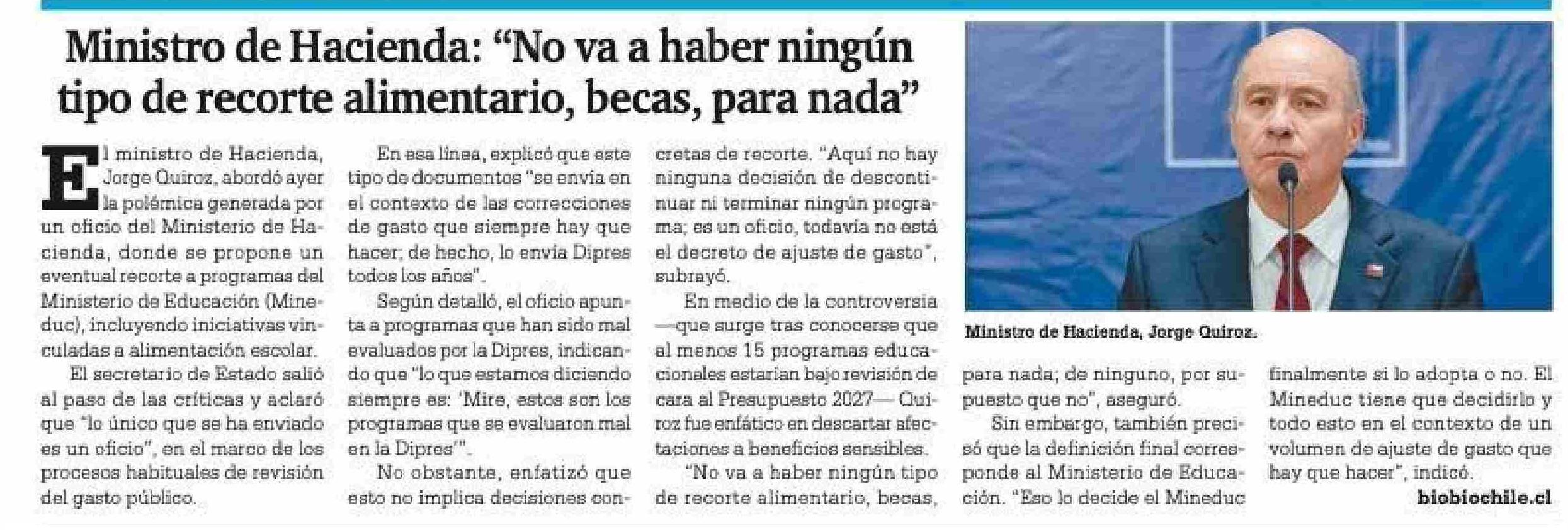 Título: Ministro de Hacienda: “No va a haber ningún tipo de recorte alimentario, becas, para nada”