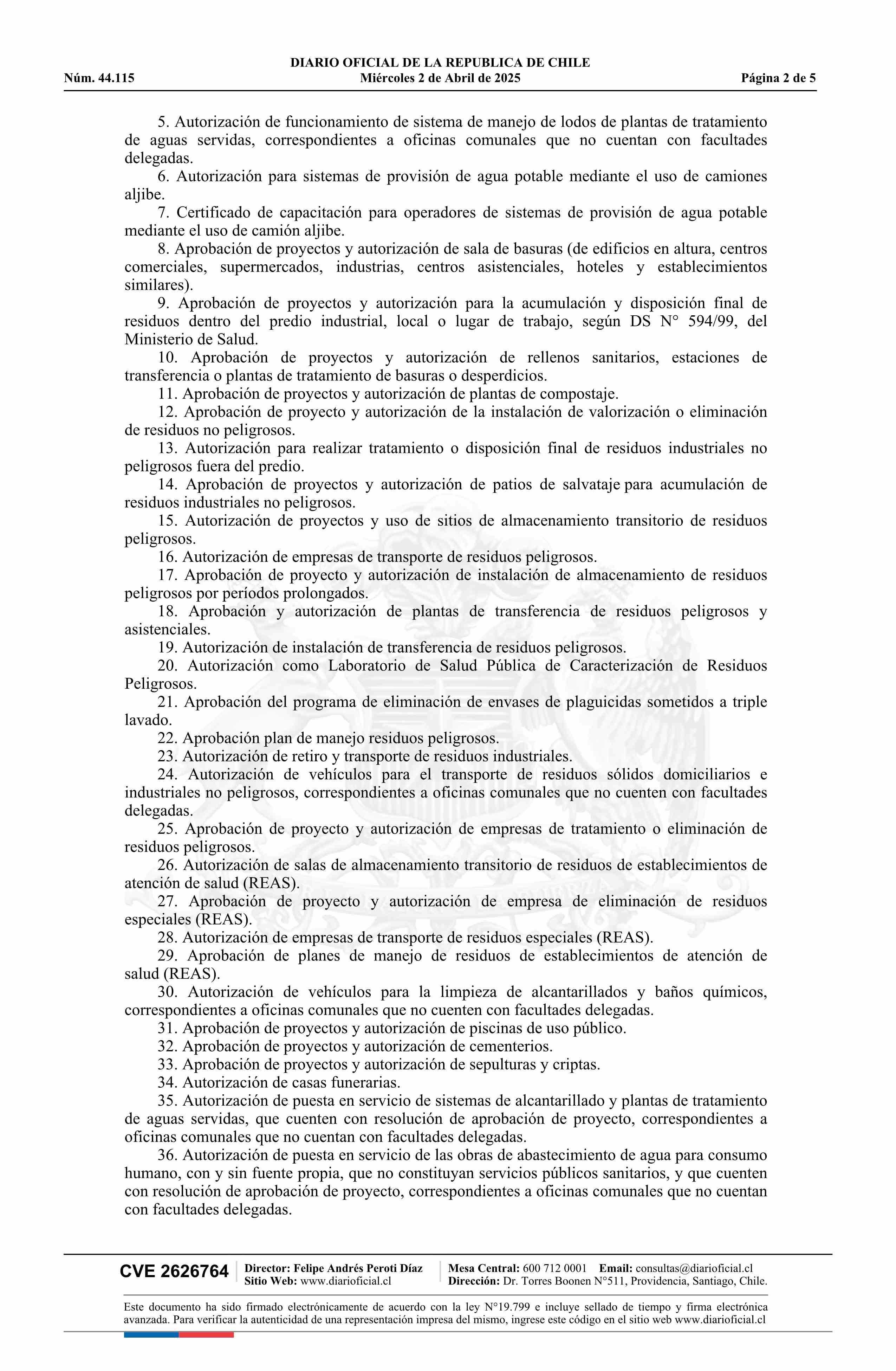Resolución exenta número 195, de 2025.- Delega facultades que indica en Jefe de Departamento de Acción Sanitaria 02-04-2025 DIARIO OFICIAL CHILE - BOLETÍN OFICIAL DE MINERÍA |