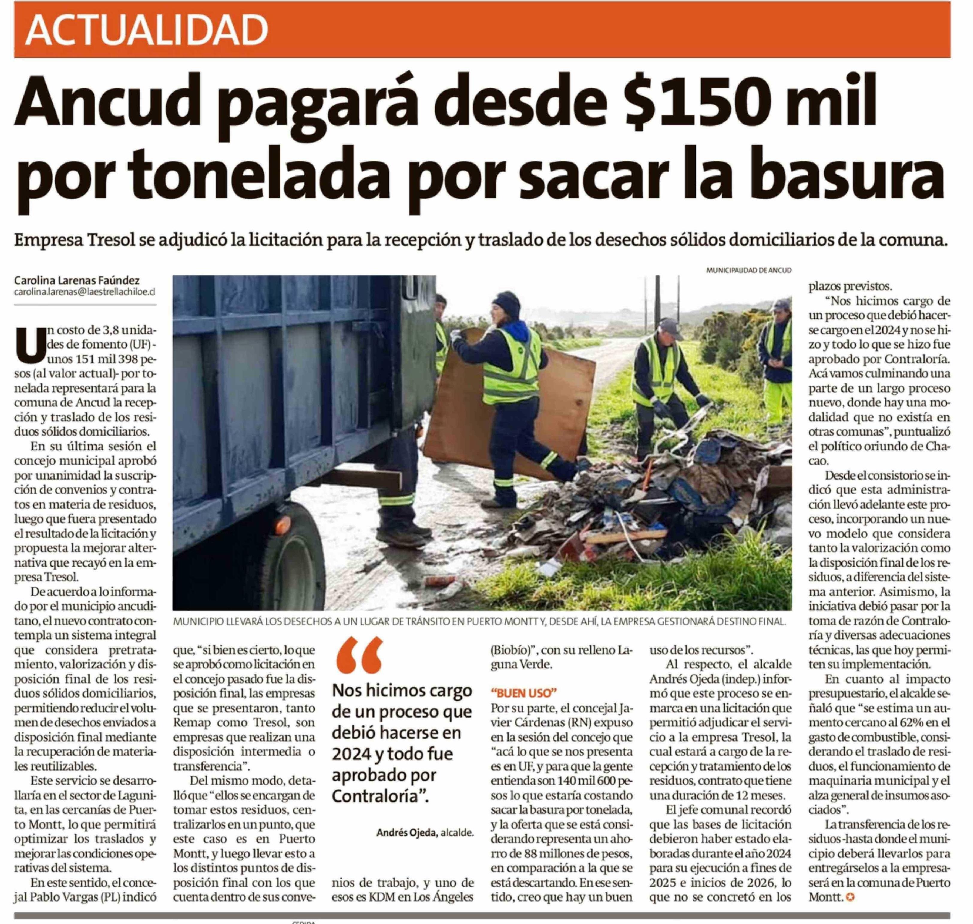 Título: Ancud pagará desde $150 mil por tonelada por sacar la basura
