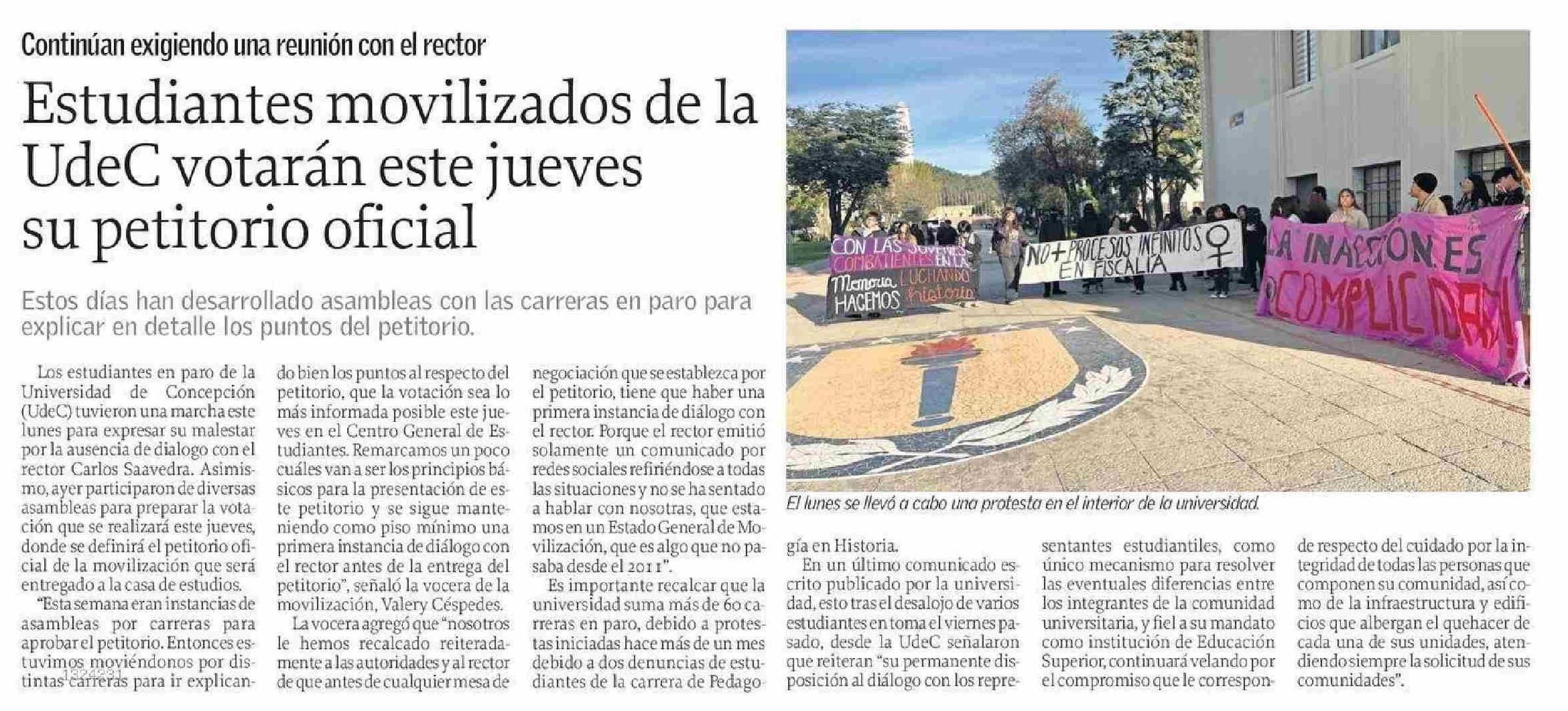 Estudiantes movilizados de la UdeC votarán este jueves su petitorio oficial 21-05-2025 El Sur |