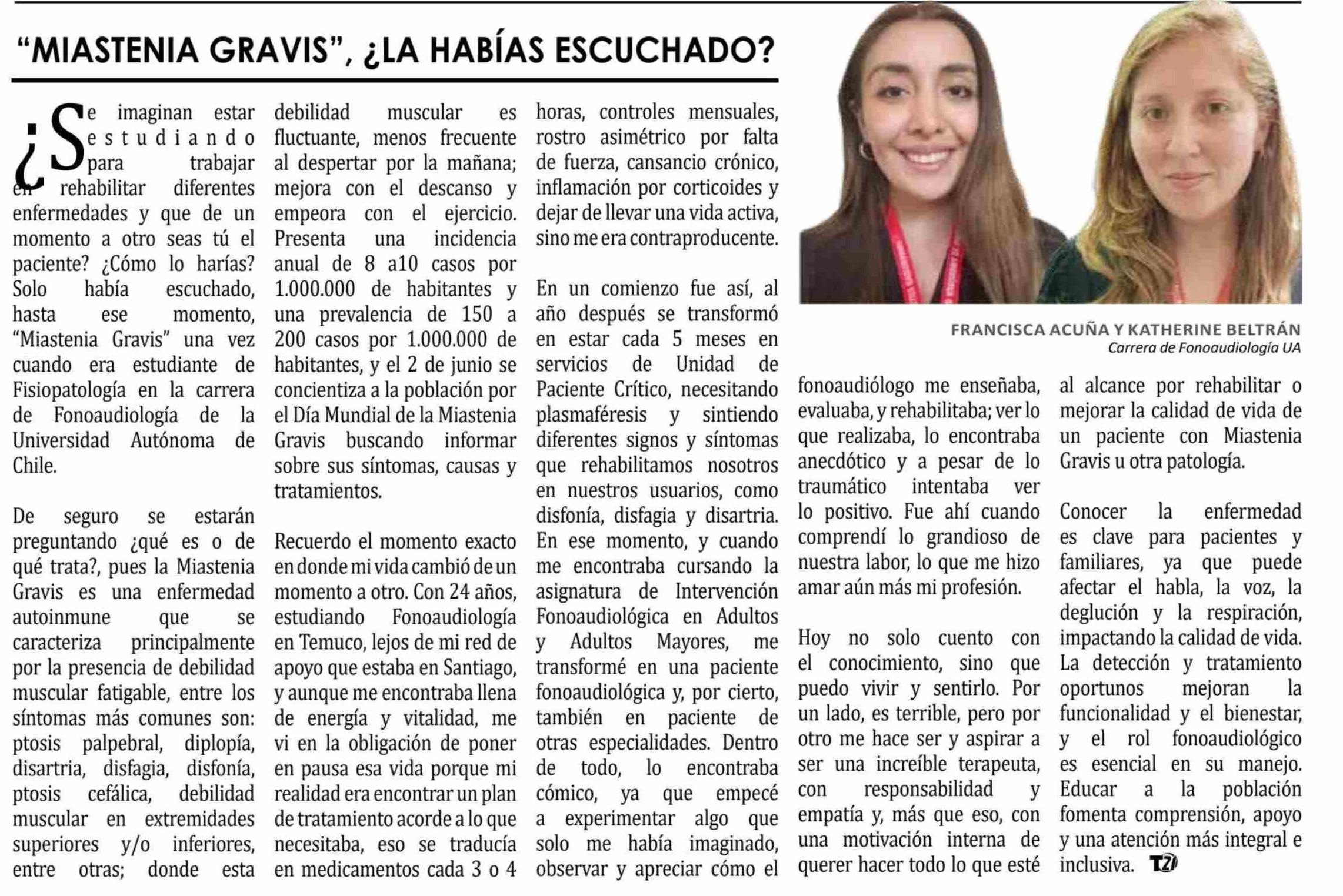 COLUMNAS DE OPINIÓN: “MIASTENIA GRAVIS”, ¿LA HABÍAS ESCUCHADO? 31-05-2025 Tiempo 21 |