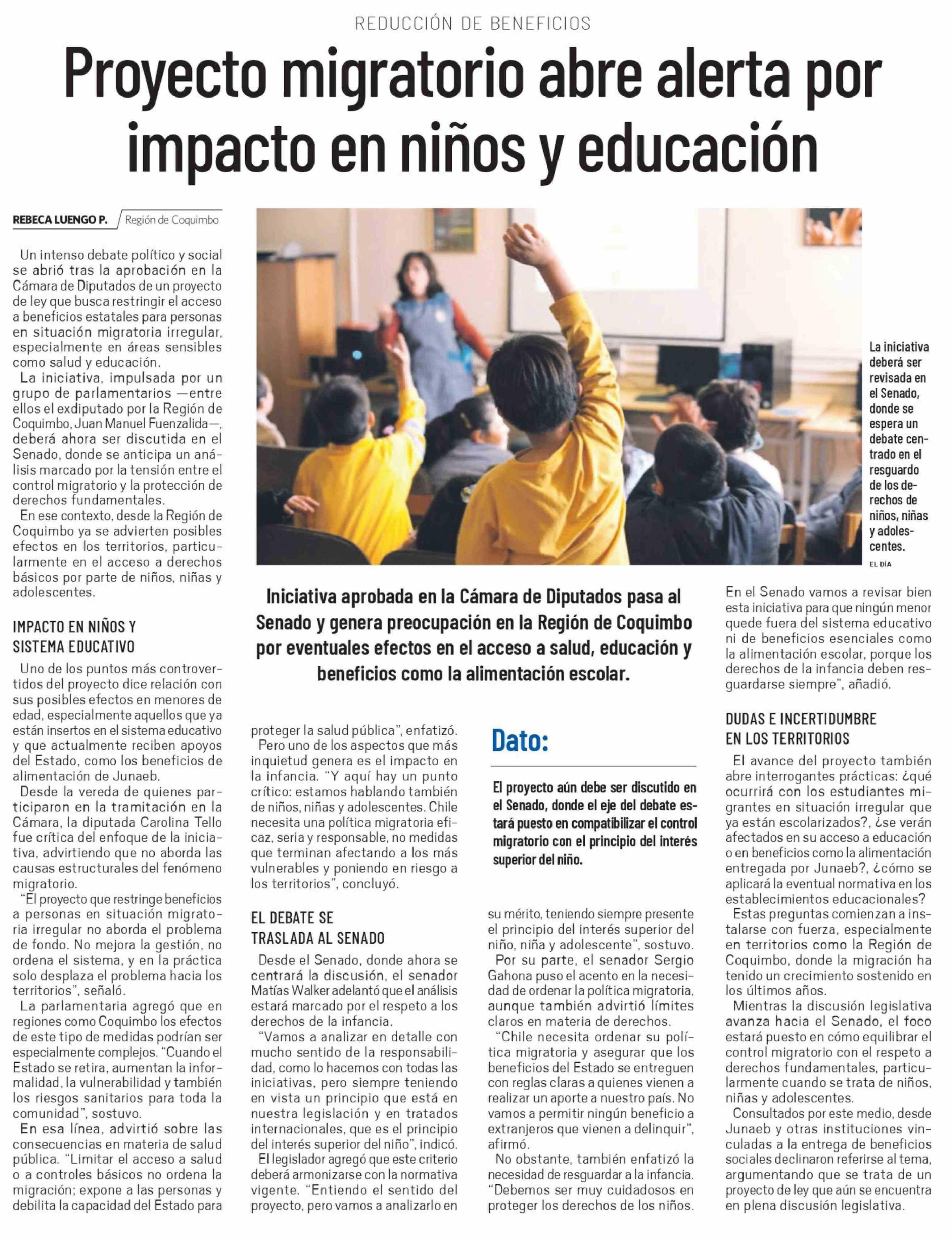 Proyecto migratorio abre alerta por impacto en niños y educación 01-04-2026 El Día |