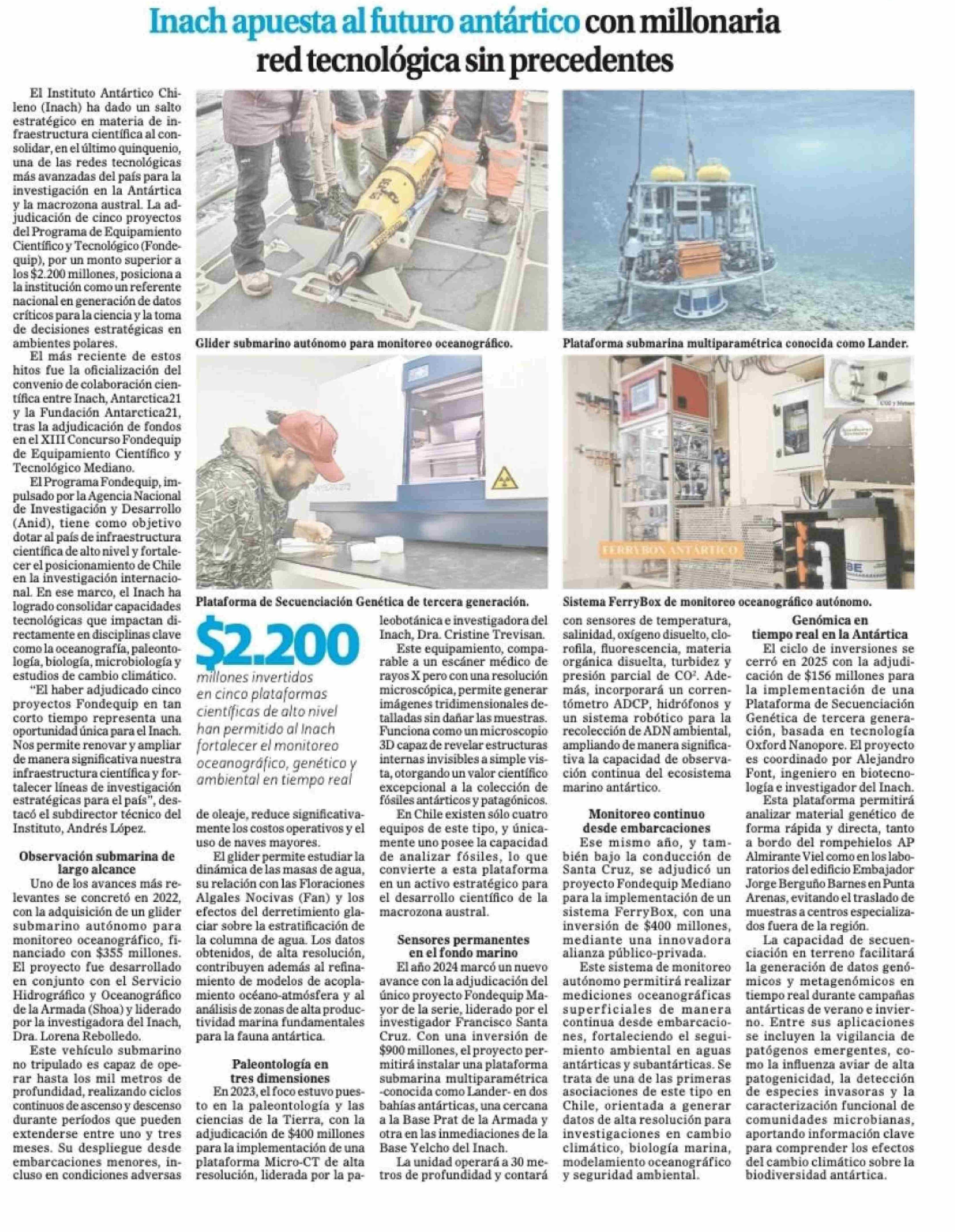 | Título: | Inach apuesta al futuro antártico con millonaria red tecnológica sin precedentes |