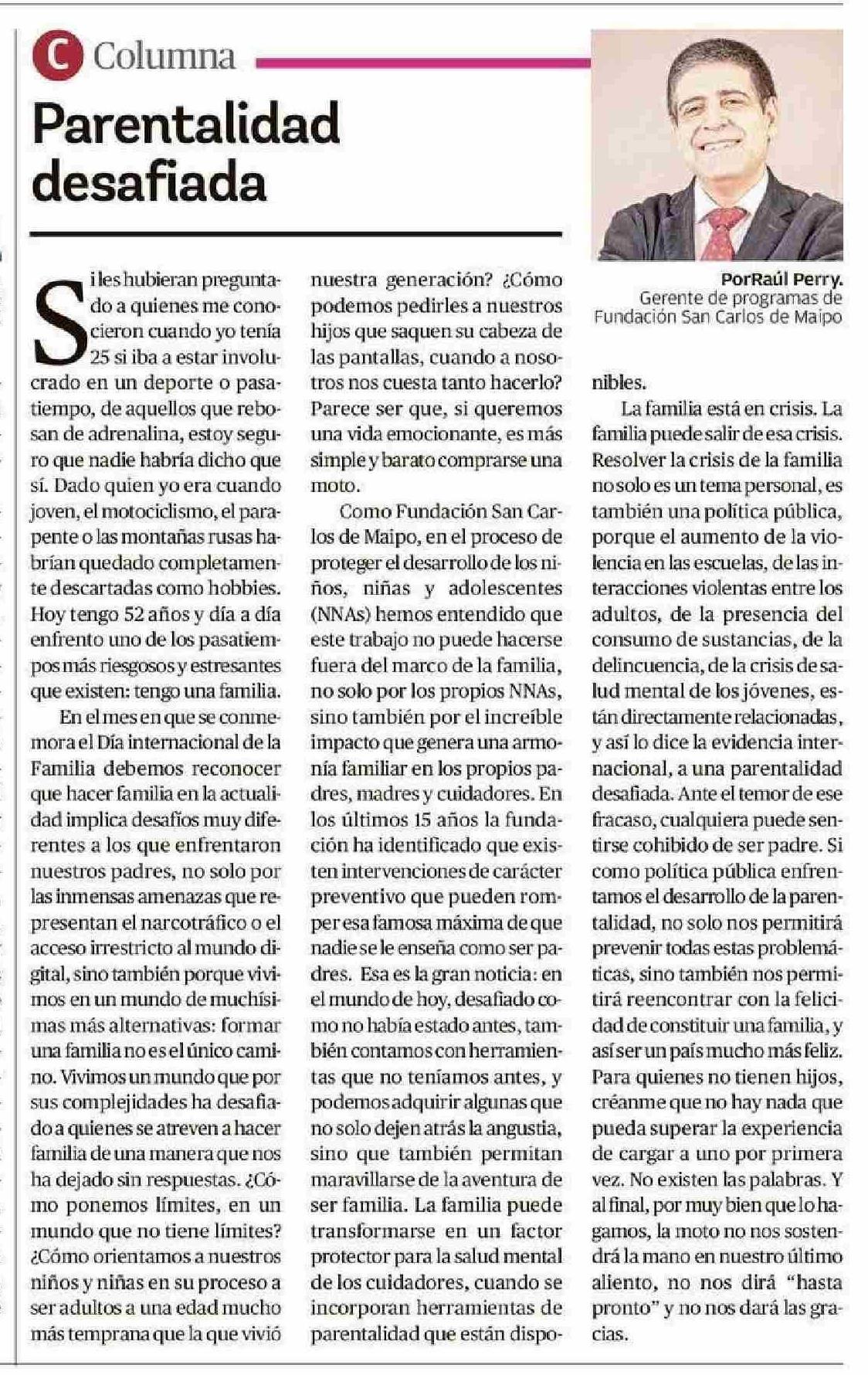 Columnas de Opinión: Parentalidad desafiada 19-05-2025 Crónica de Chillán |