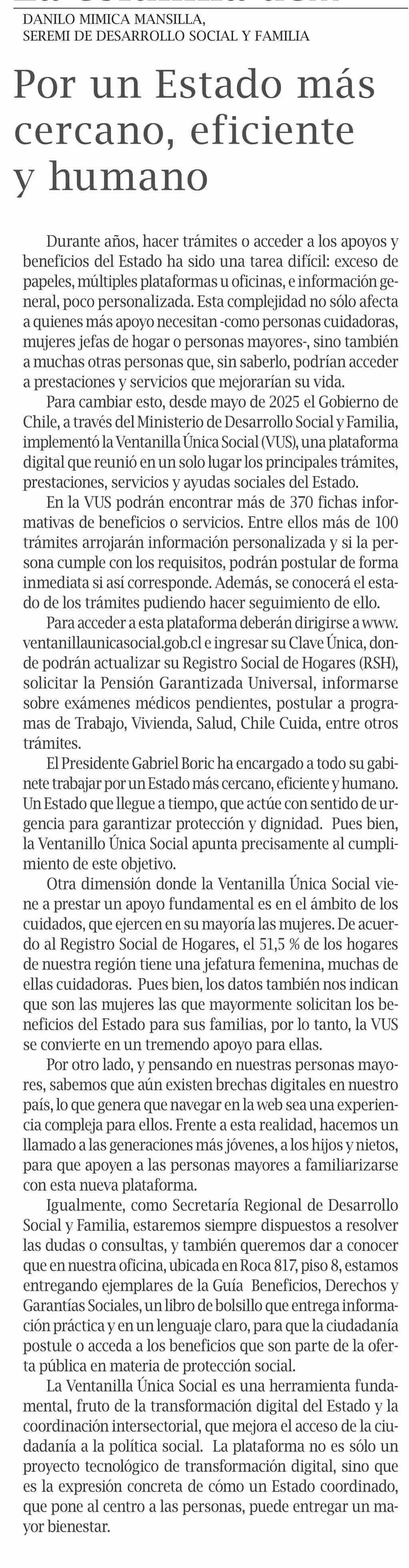 Columnas de Opinión: Por un Estado más cercano, eficiente y humano 31-05-2025 El Pingüino |