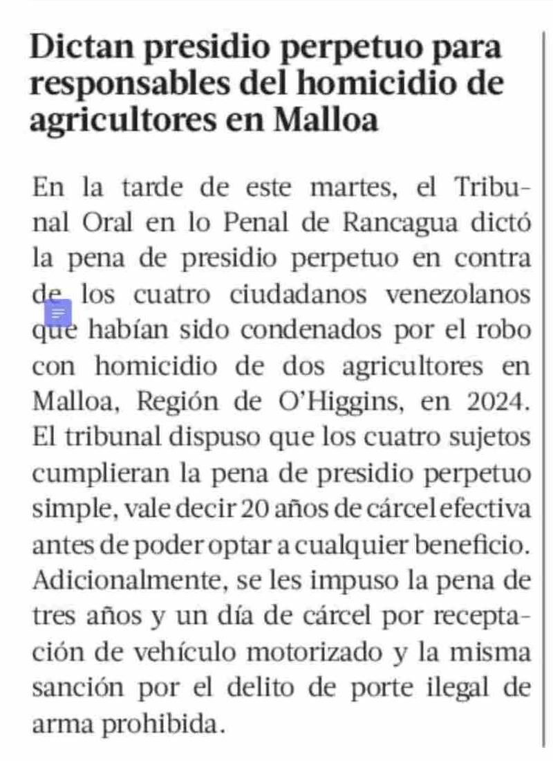 Título: Dictan presidio perpetuo para responsables del homicidio de agricultores en Malloa