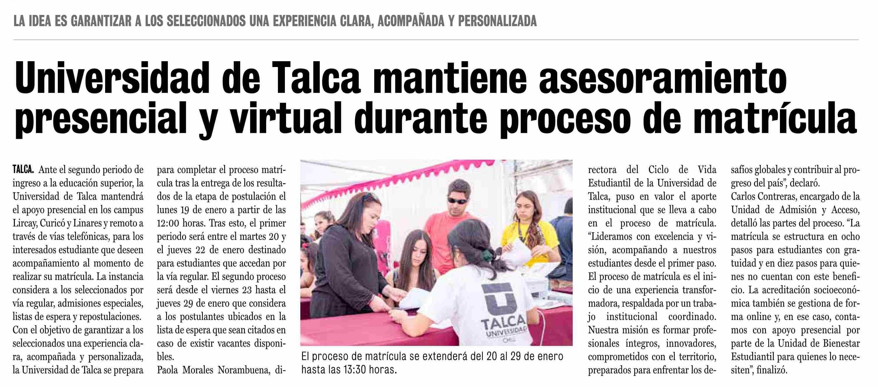 Título: Universidad de Talca mantiene asesoramiento presencial y virtual durante proceso de matrícula