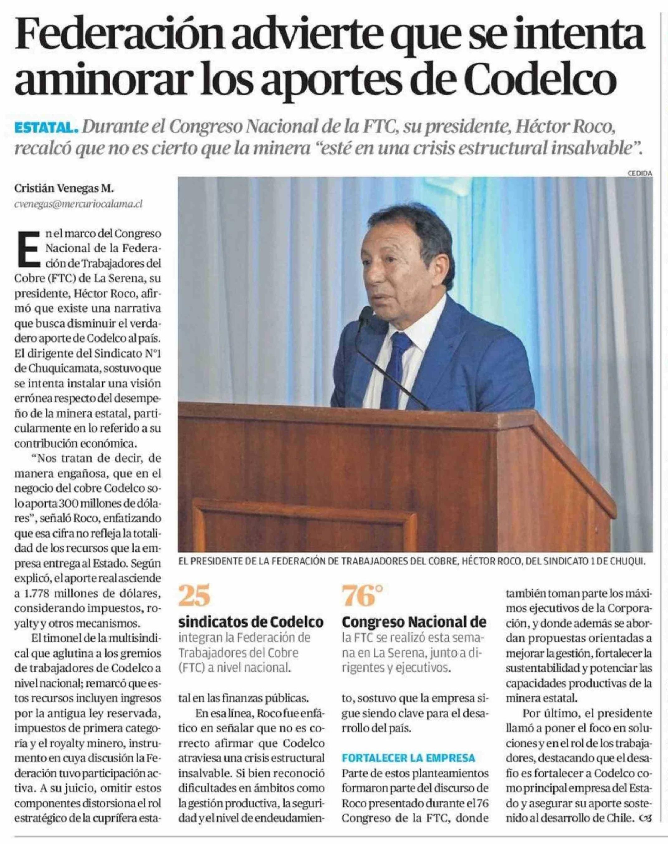Título: Federación advierte que se intenta aminorar los aportes de Codelco
