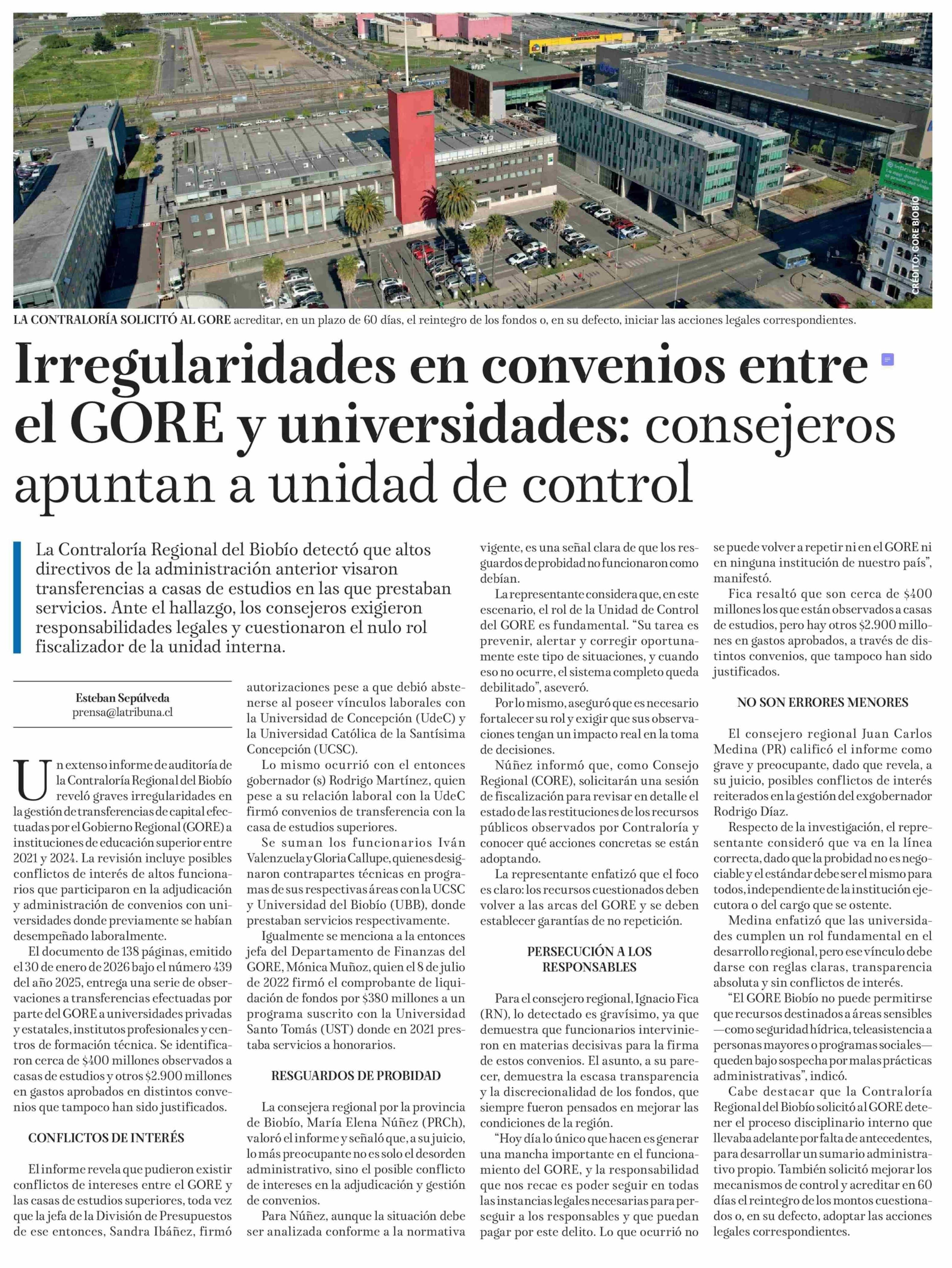 Título: Irregularidades en convenios entre el GORE y universidades: consejeros apuntan a unidad de control