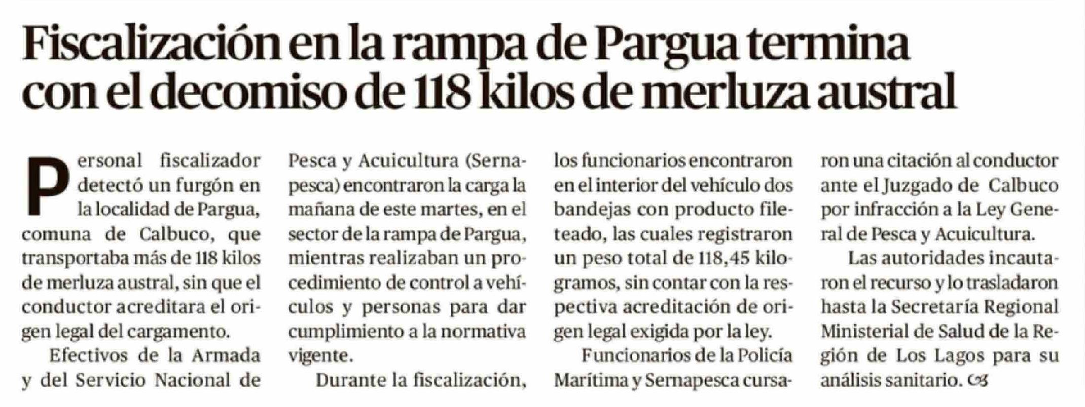 | Título: | Fiscalización en la rampa de Pargua termina con el decomiso de 118 kilos de merluza austral |