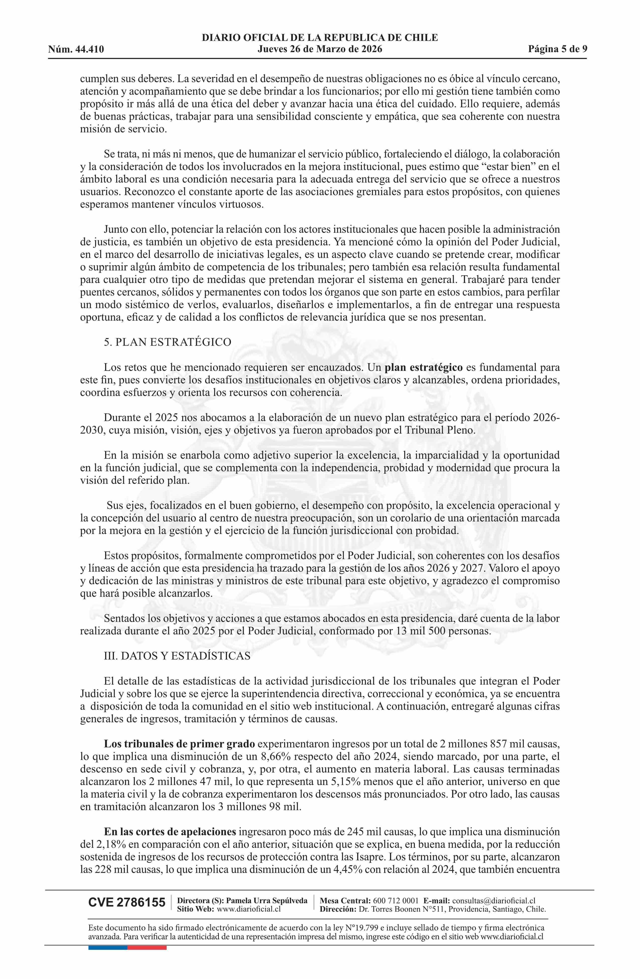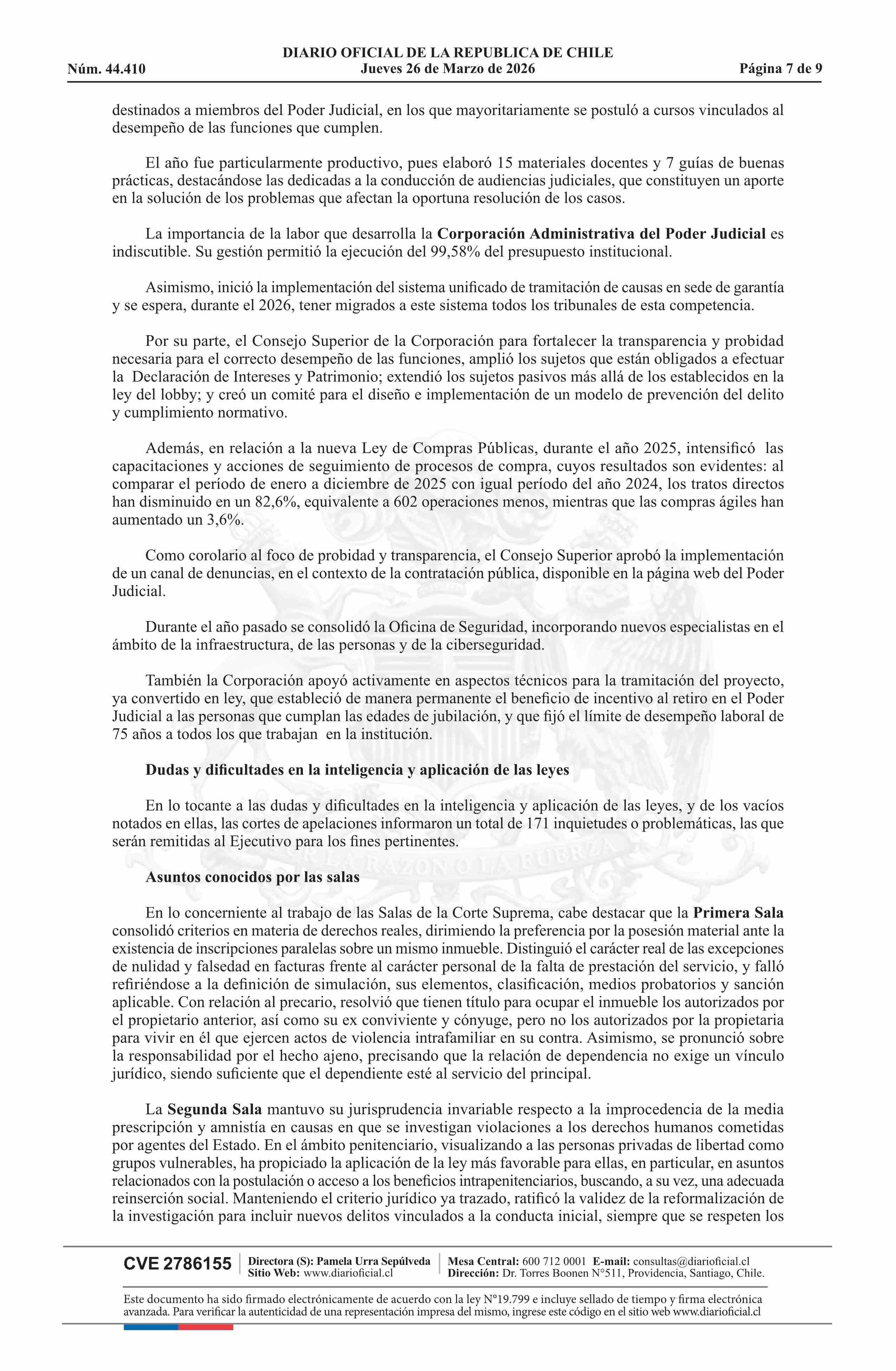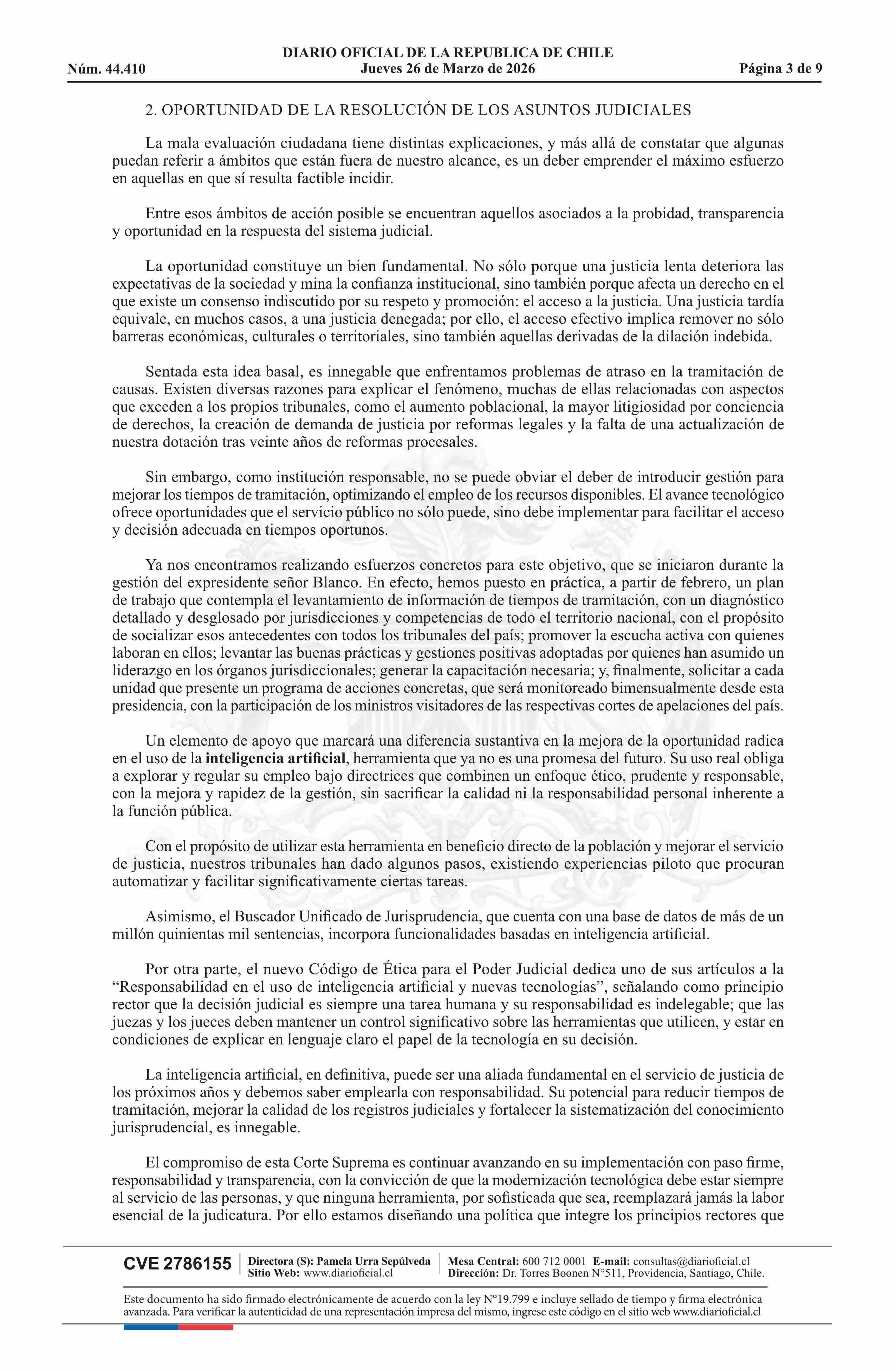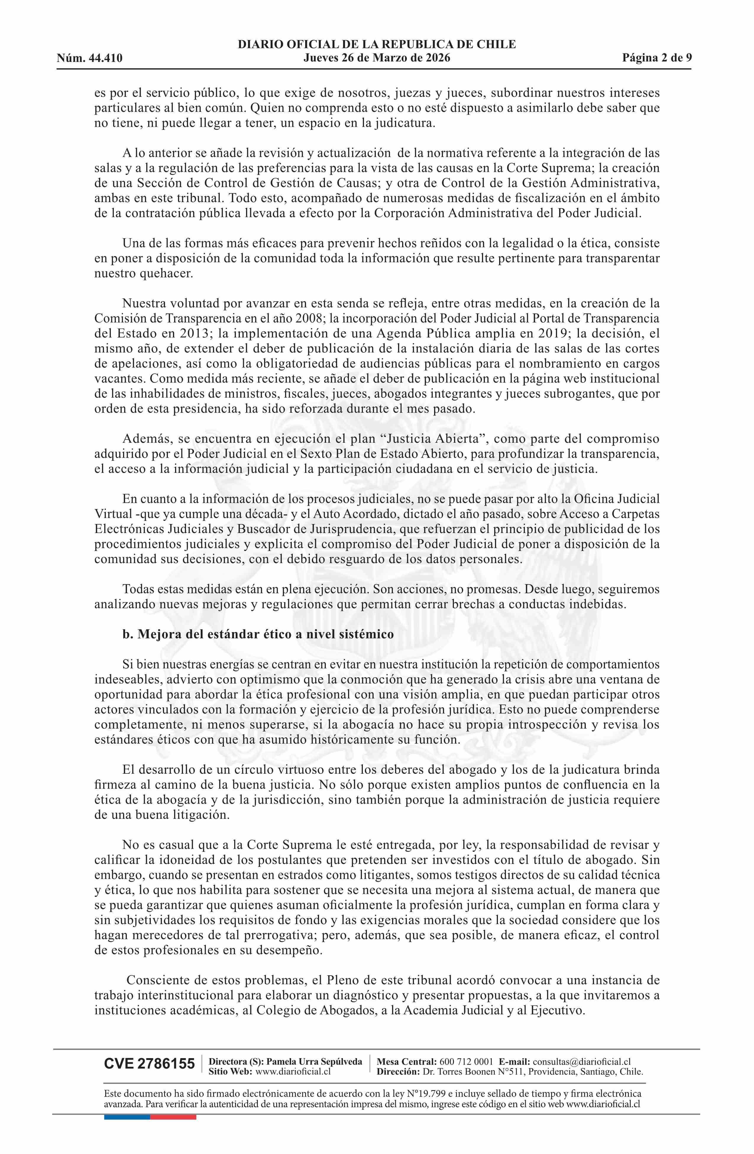 Cuenta Pública de la Presidenta de la Corte Suprema, año 2026 26-03-2026 Diario Oficial Edición Electrónica |
