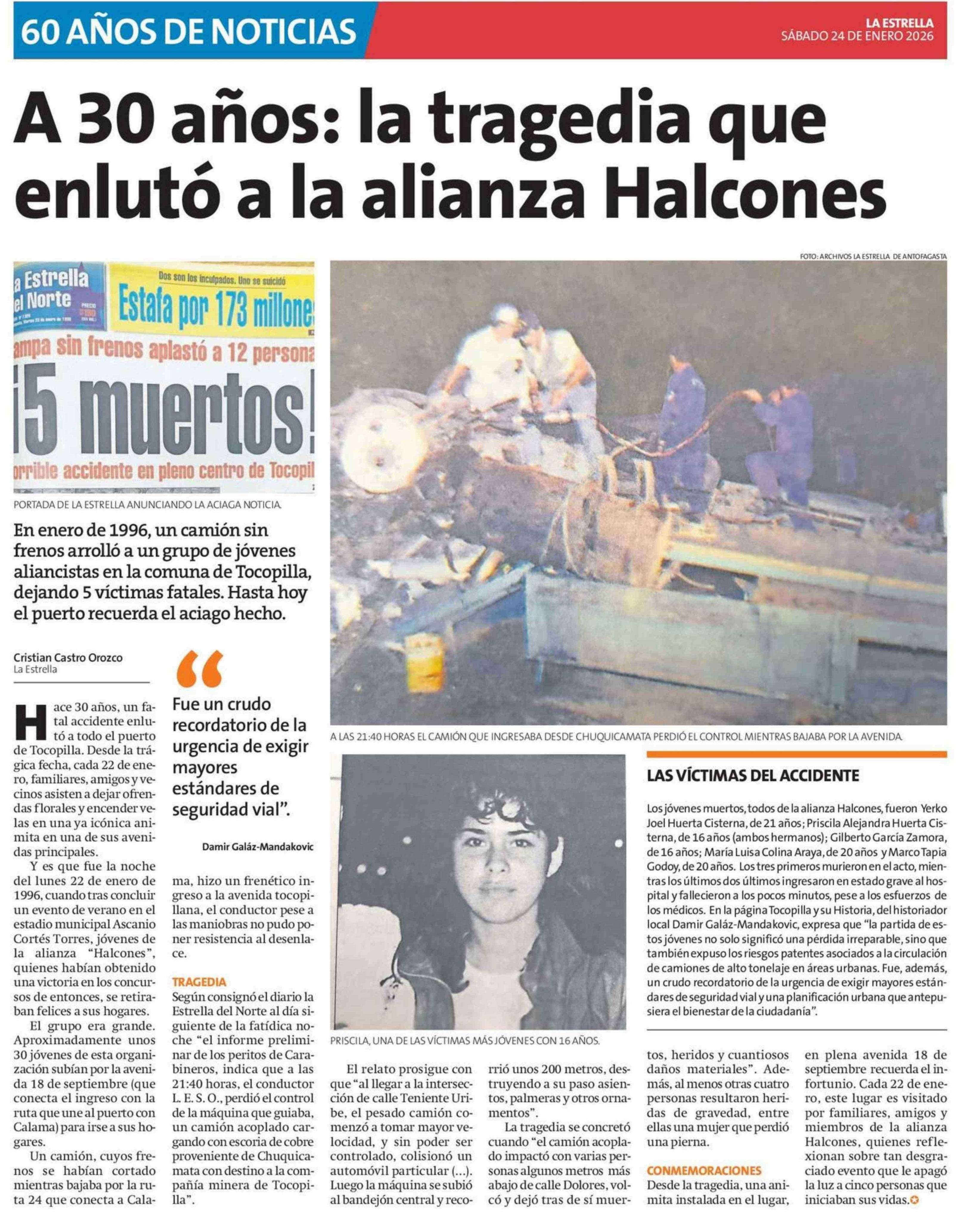 A 30 años: la tragedia que enlutó a la alianza Halcones 24-01-2026 La Estrella de Antofagasta |