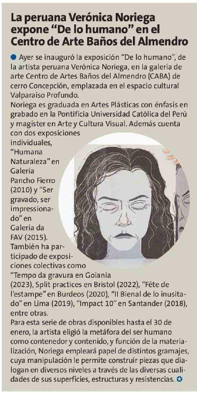 La peruana Verónica Noriega expone "De lo humano" en el Centro de Arte Baños del Almendro 09-01-2026 La Estrella de Quillota |