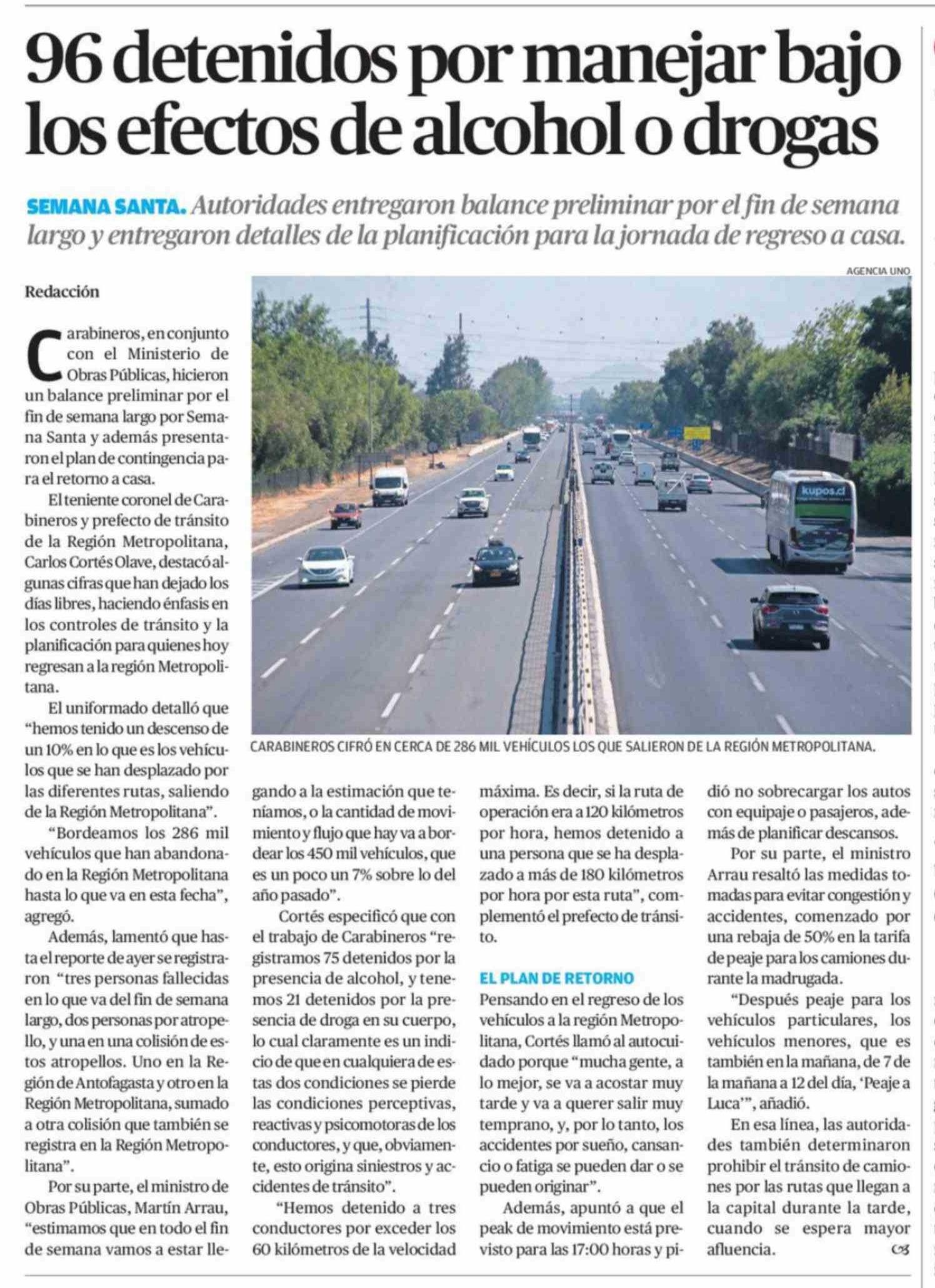 Título: 96 Detenidos por manejar bajo los efectos de alcohol o drogas
