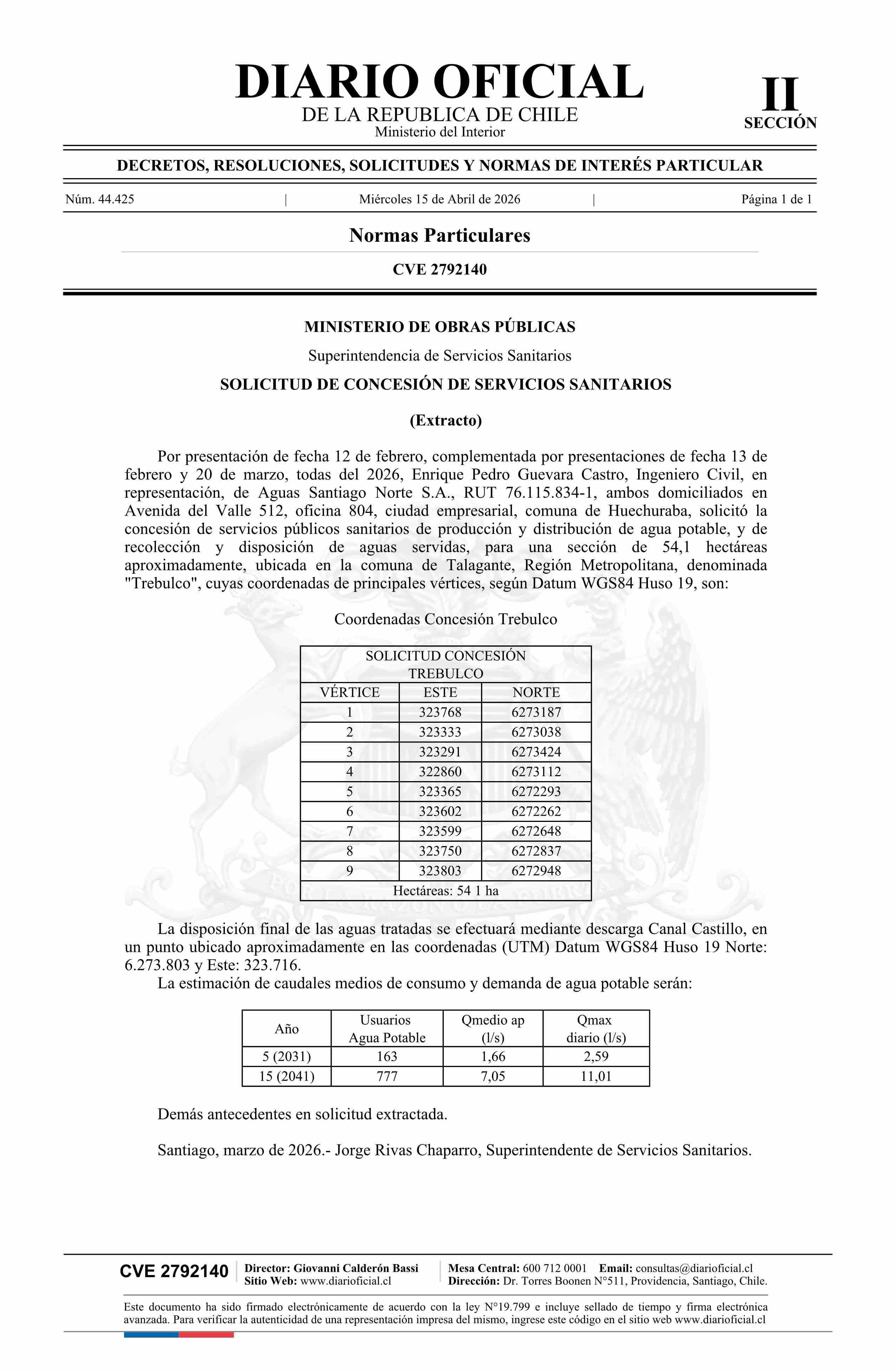 Fuente: Diario Oficial Edición Electrónica (Diario Oficial de Chile - 2 Normas Particulares) Página(s): 157