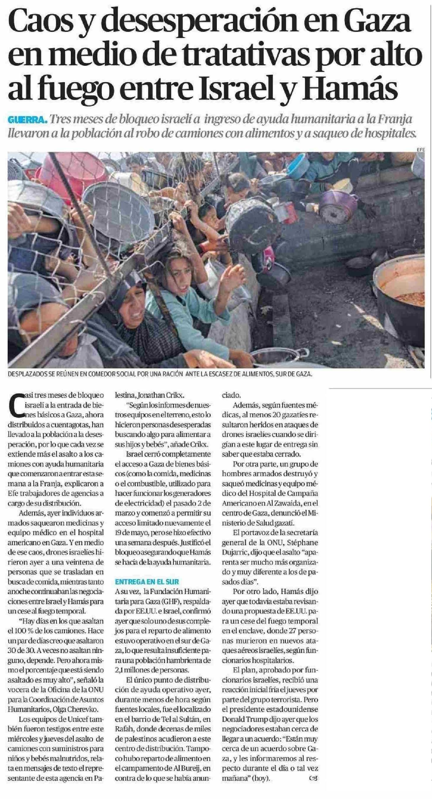 Caos y desesperación en Gaza en medio de tratativas por alto al fuego entre Israel y Hamás 31-05-2025 El Mercurio de Calama |
