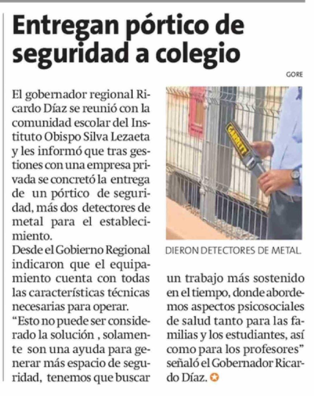 | Título: | Entregan pórtico de seguridad a colegio |