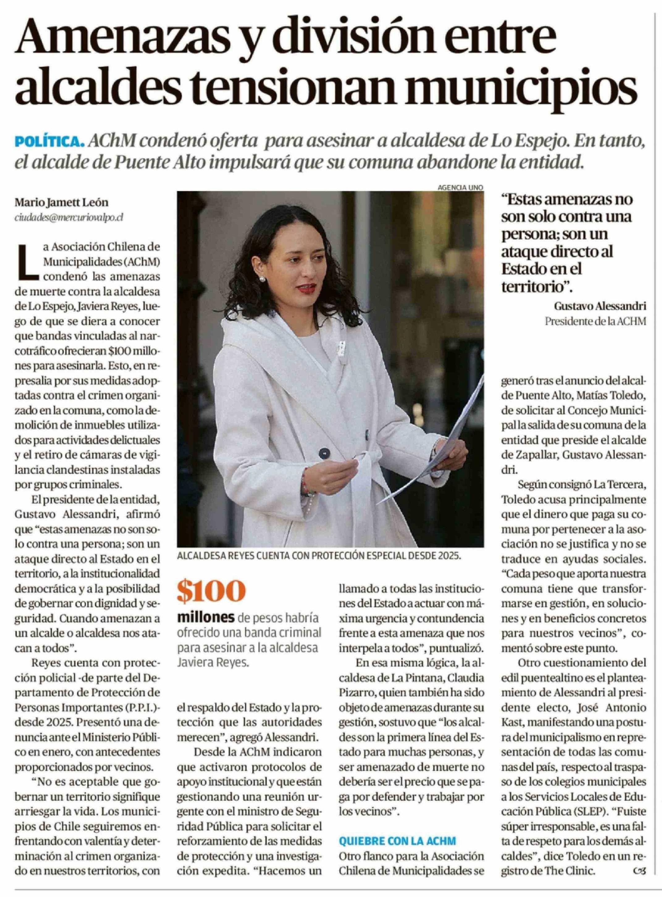Amenazas y división entre alcaldes tensionan municipios 13-02-2026 El Mercurio de Valparaíso |