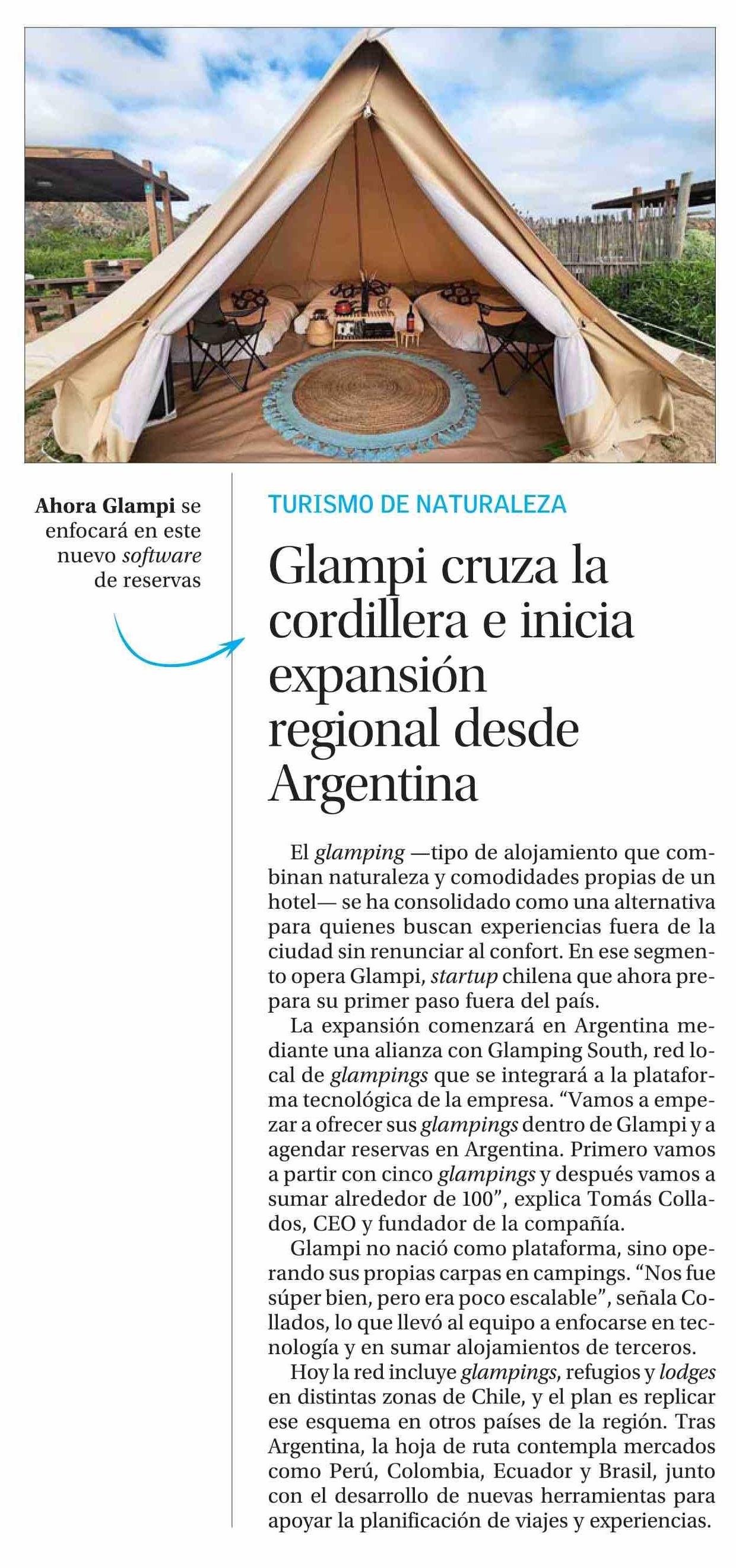 Glampi cruza la cordillera e inicia expansión regional desde Argentina 22-01-2026 El Mercurio |