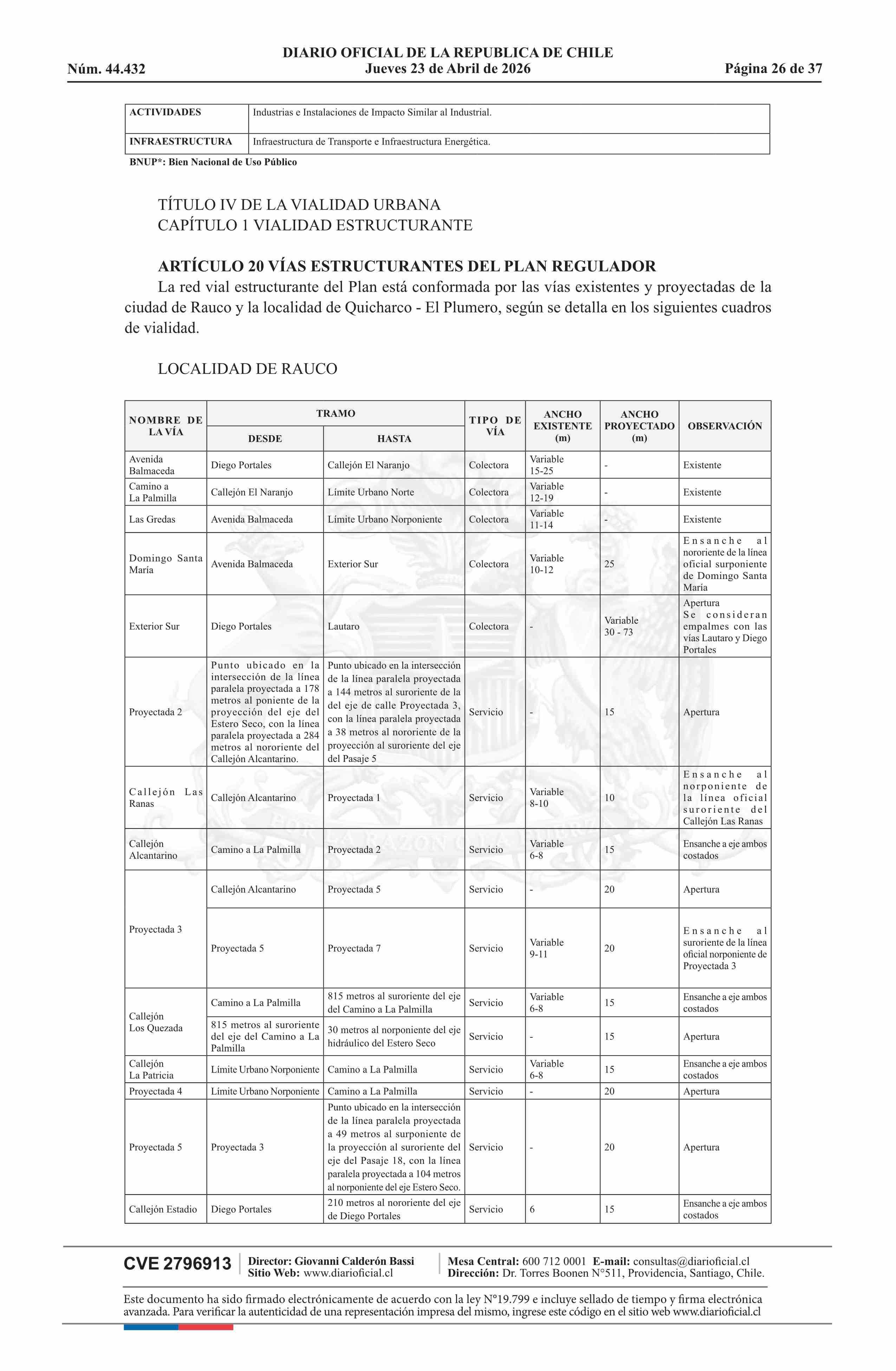 Resolución número 60, de 2025.- Promulga Plan Regulador Comunal de Rauco 23-04-2026 Diario Oficial Edición Electrónica |