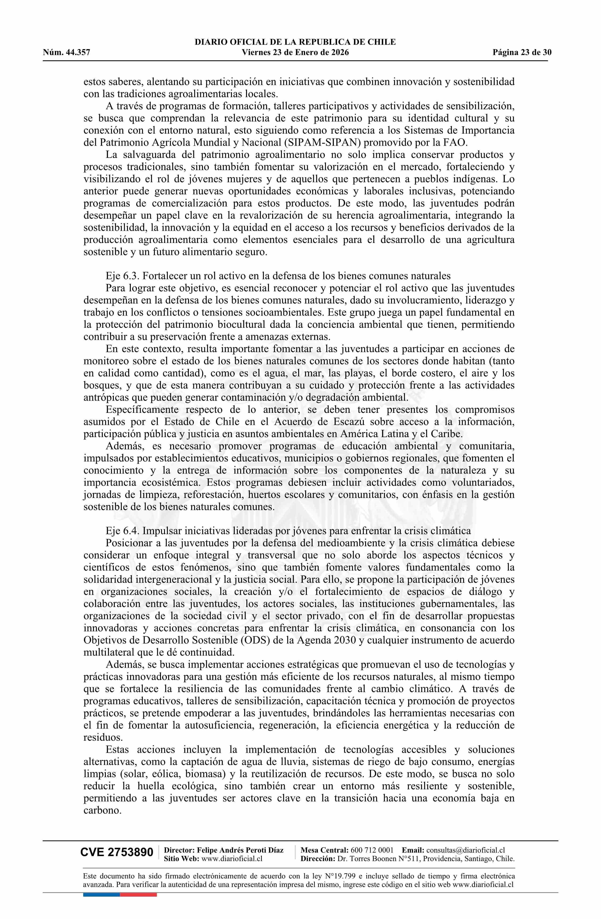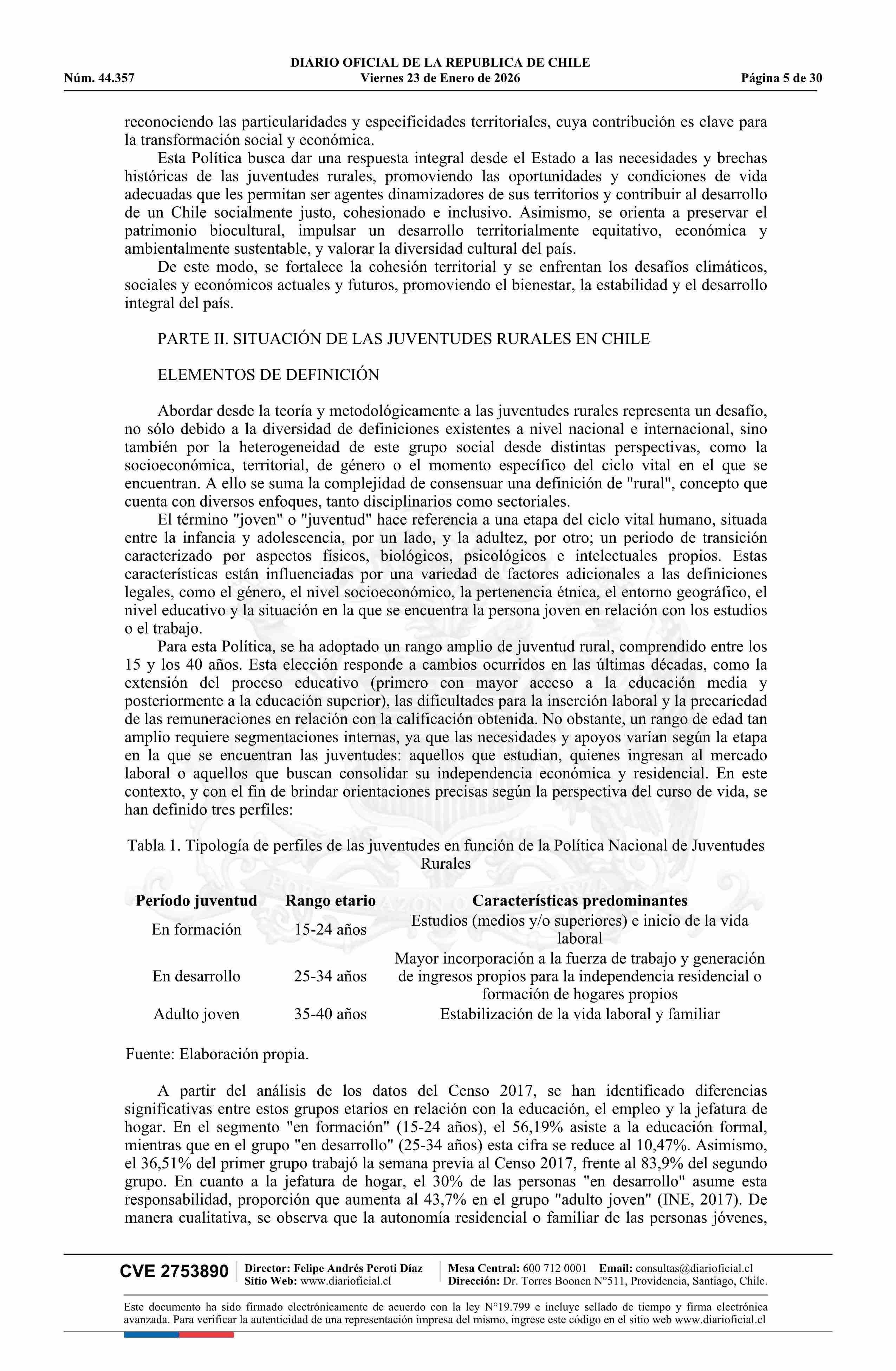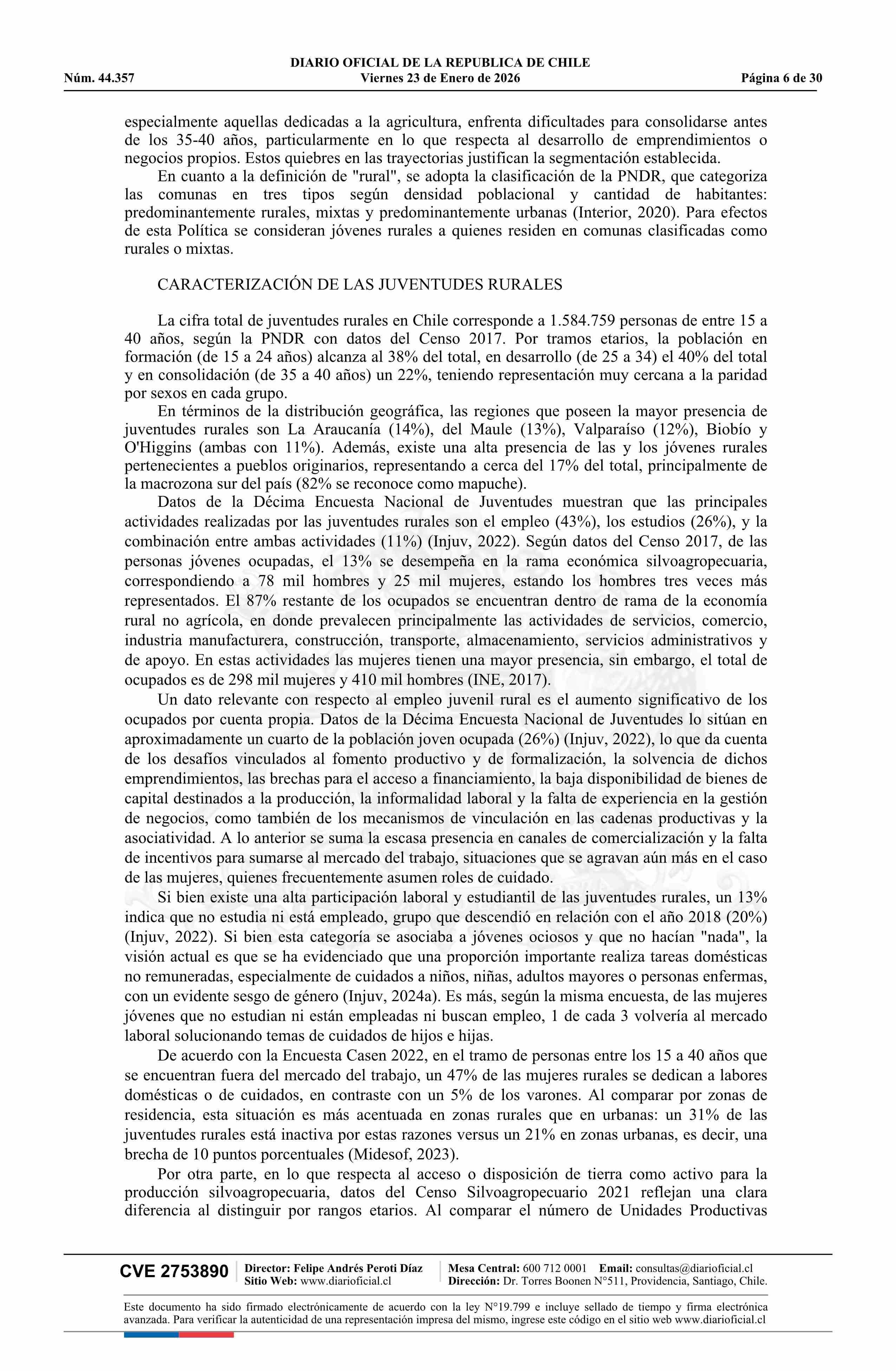 Título: Decreto número 18, de 2025.- Aprueba Política Nacional de Juventudes Rurales