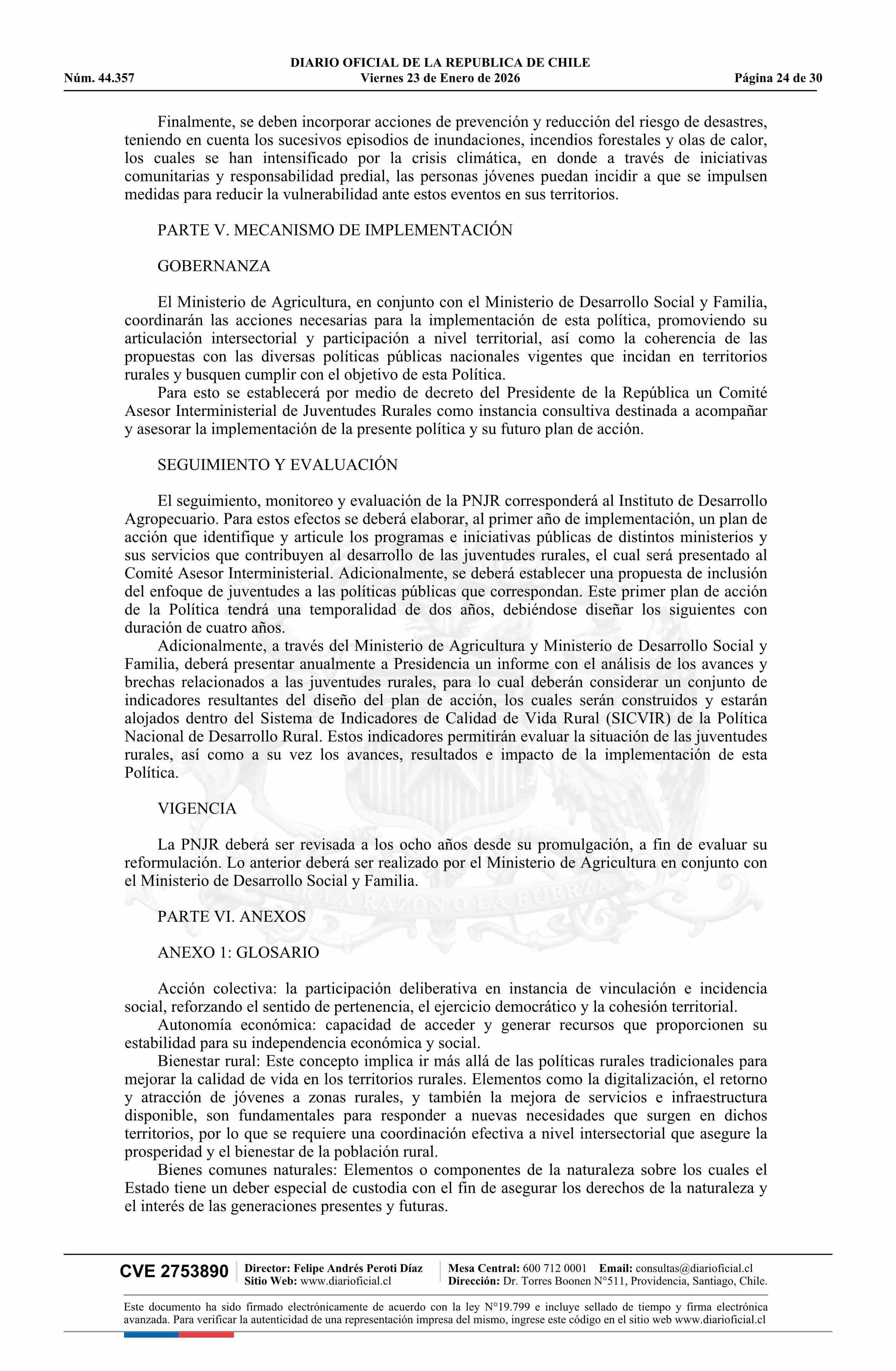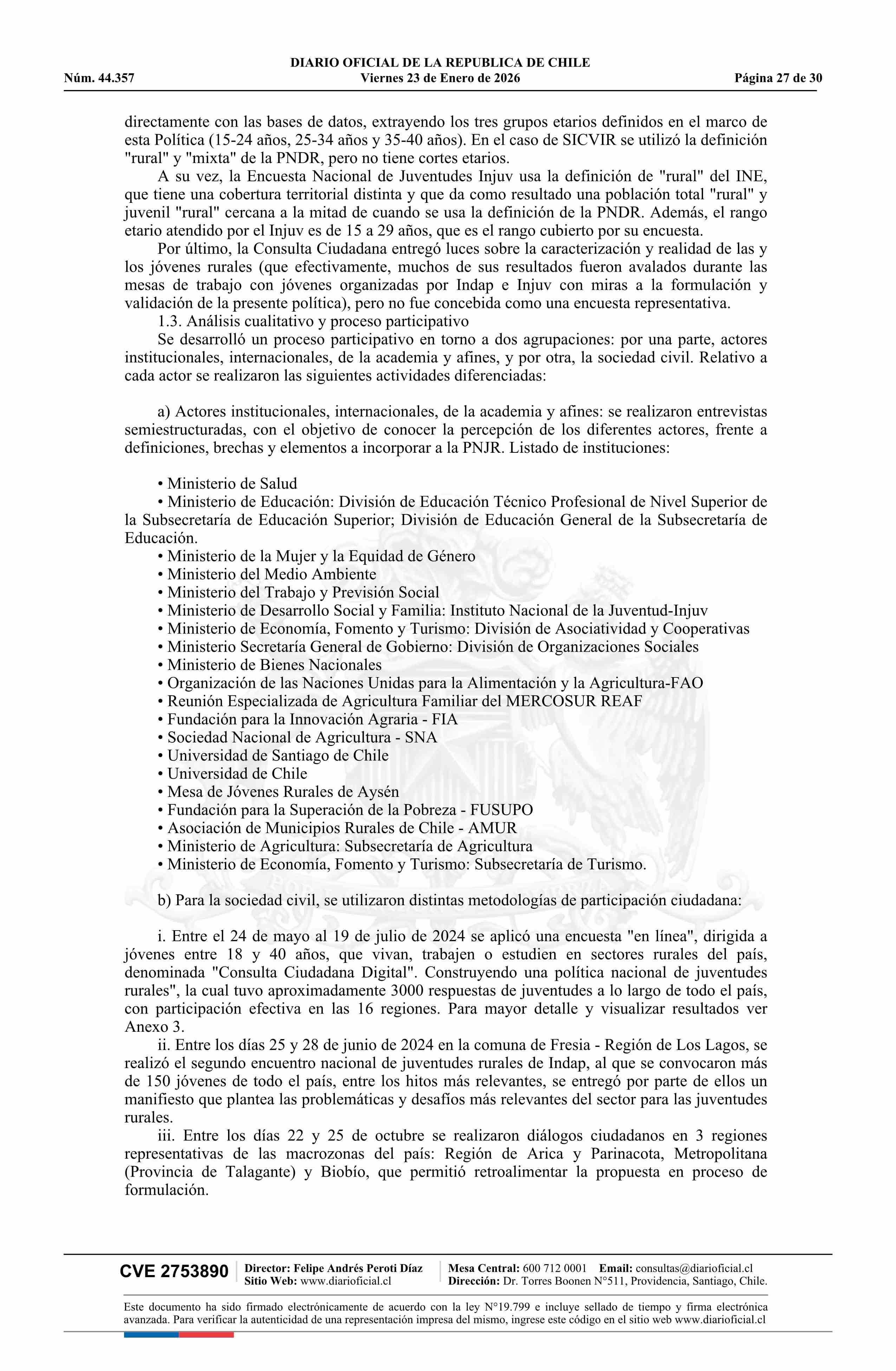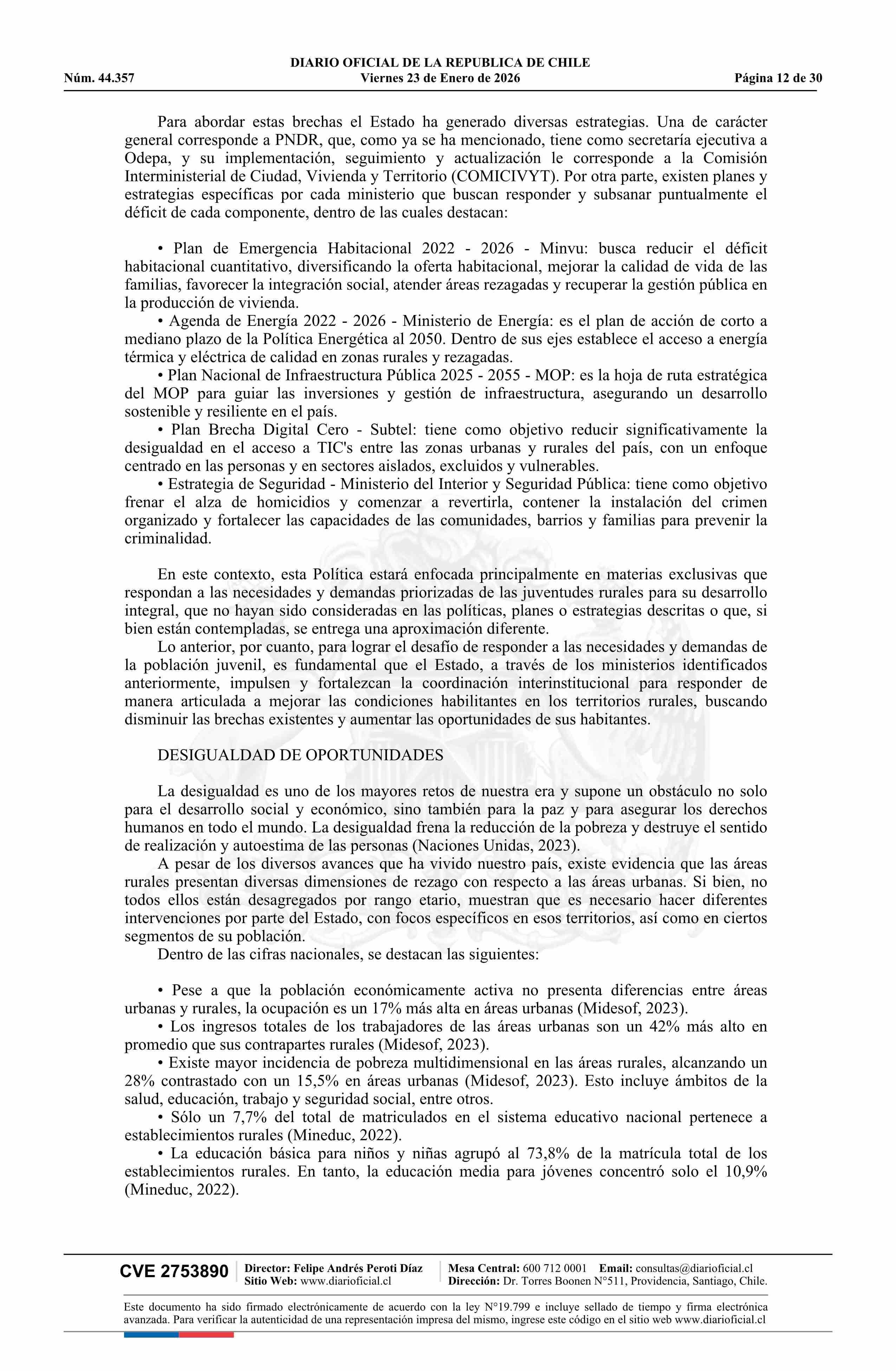 Título: Decreto número 18, de 2025.- Aprueba Política Nacional de Juventudes Rurales