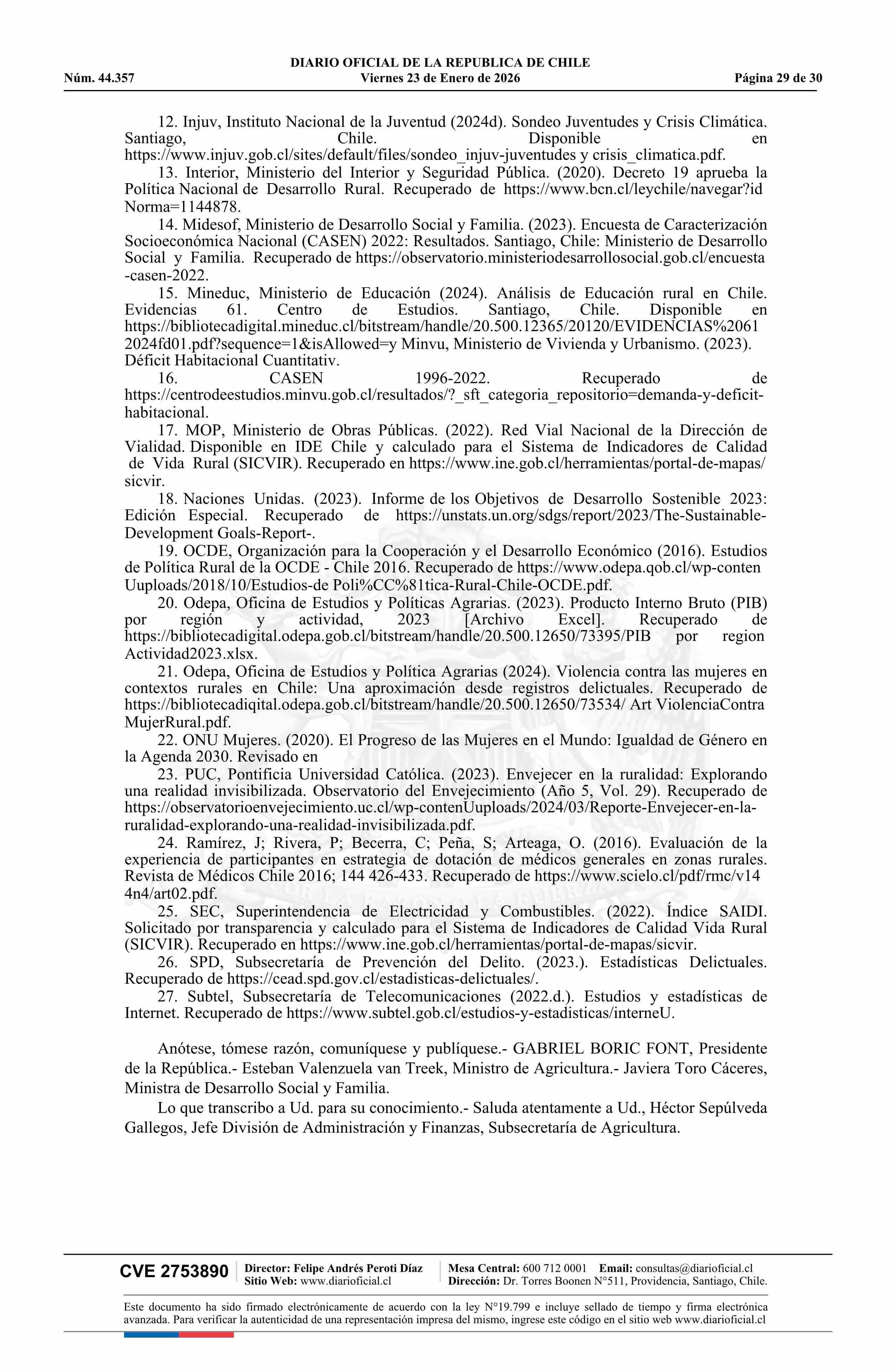Decreto número 18, de 2025.- Aprueba Política Nacional de Juventudes Rurales