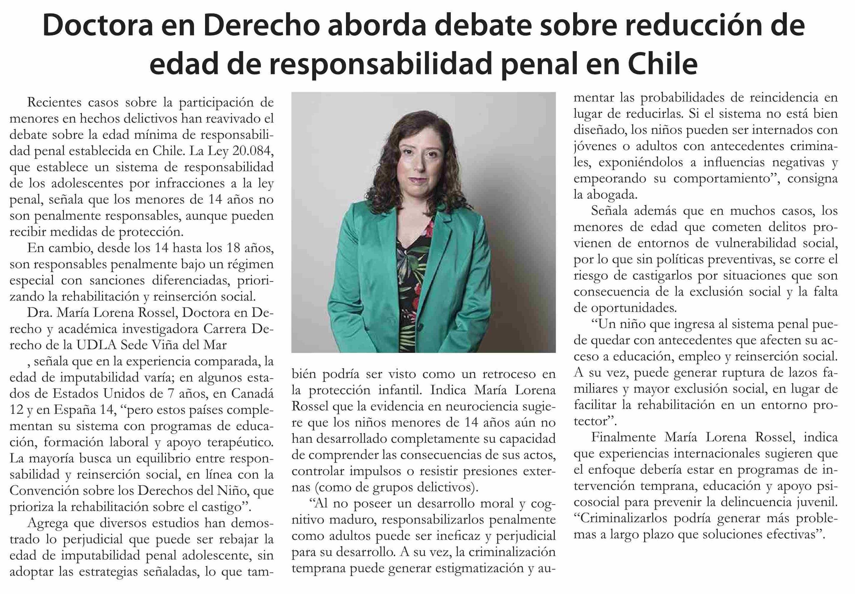 | Título: | Doctora en Derecho aborda debate sobre reducción de edad de responsabilidad penal en Chile |