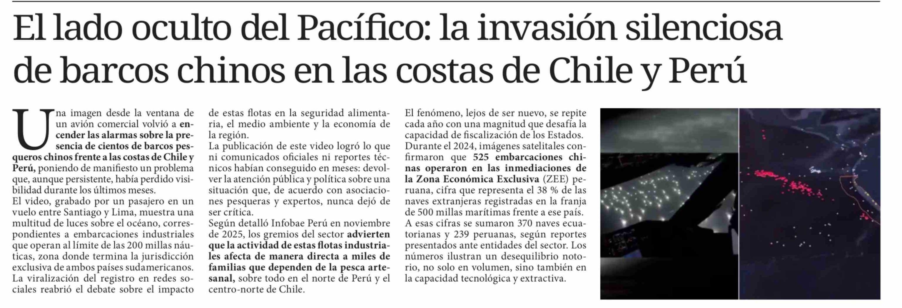 El lado oculto del Pacífico: la invasión silenciosa de barcos chinos en las costas de Chile y Perú 16-02-2026 Diario Chañarcillo |