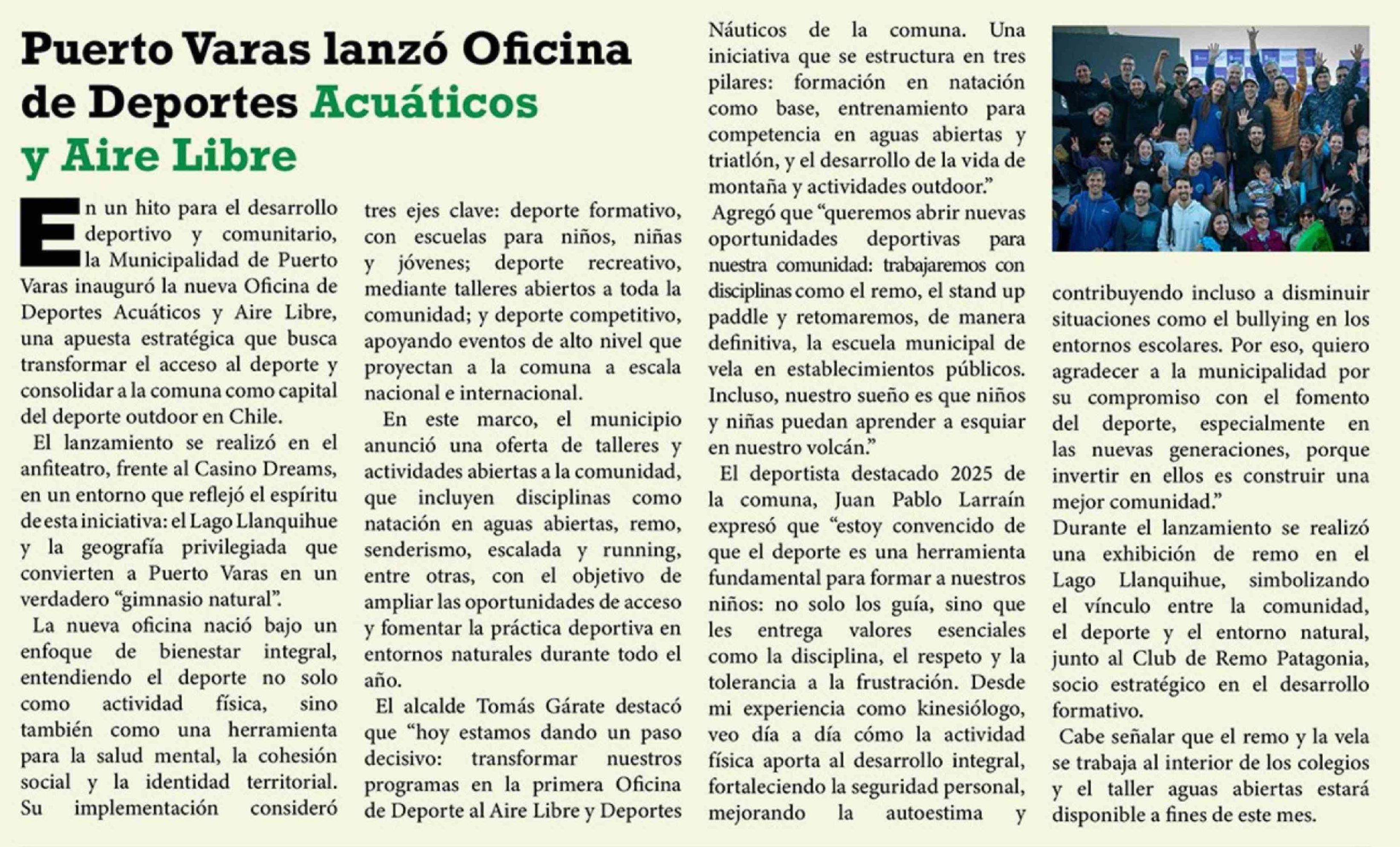 Puerto Varas lanzó Oficina de Deportes Acuáticos y Aire Libre 14-04-2026 El Heraldo Austral |