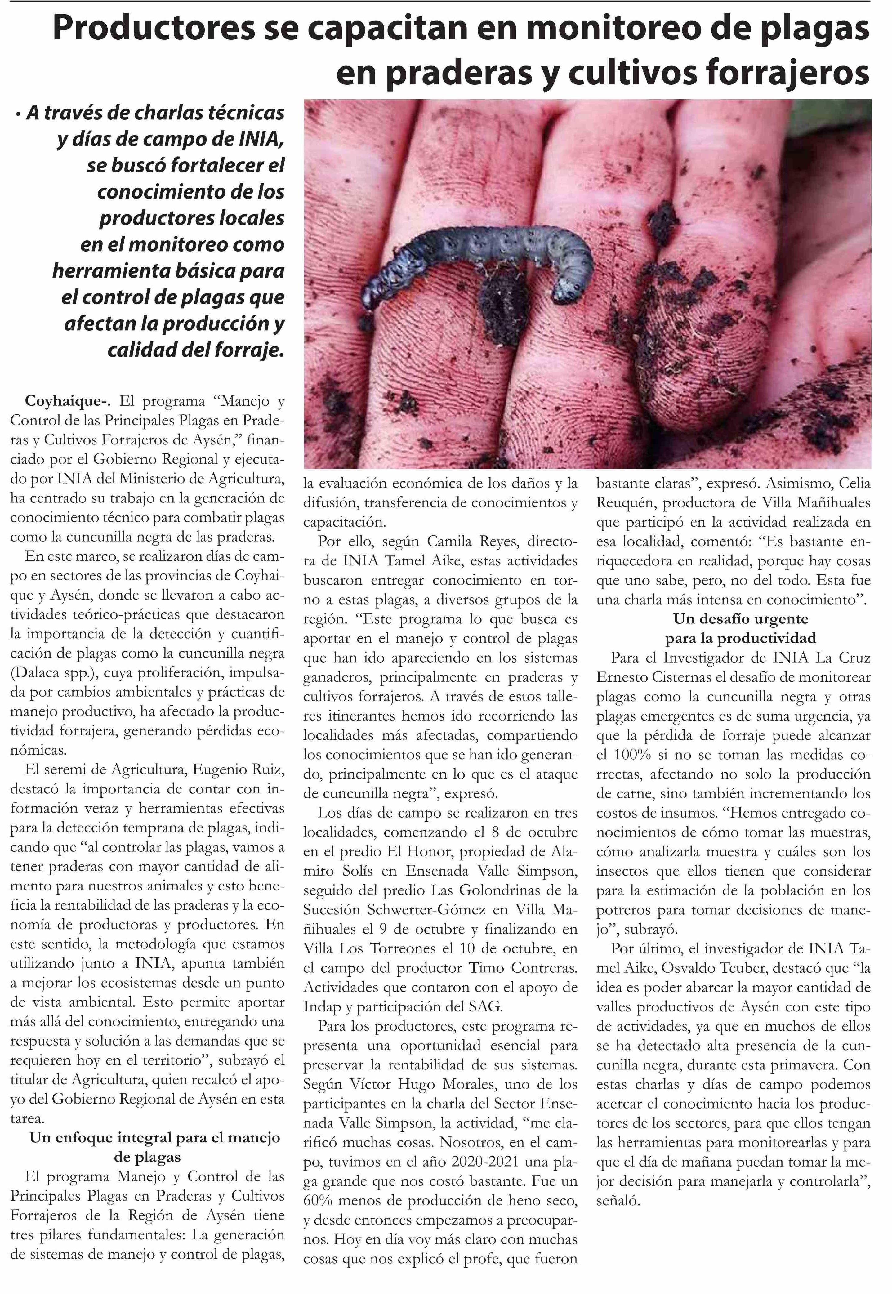 Título: Productores se capacitan en monitoreo de plagas en praderas y cultivos forrajeros