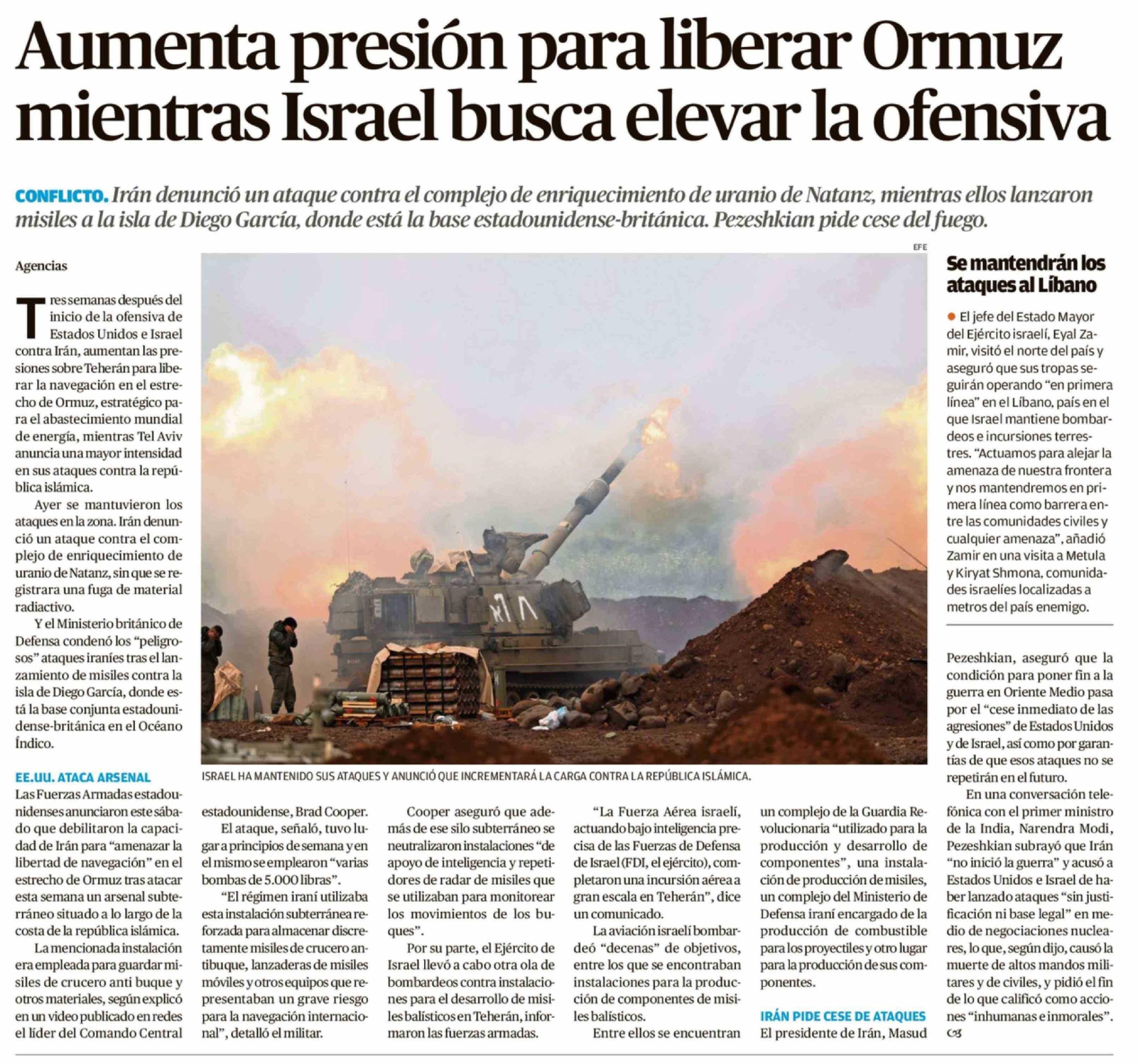 Aumenta presión para liberar Ormuz mientras Israel busca elevar la ofensiva 22-03-2026 El Austral de Osorno |